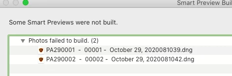 I try to force a build by manually selecting the files and building, but that doesn't work either. I also have a smart collection that is mean to catch files where a smart preview is not built, and that doesn't catch it either.