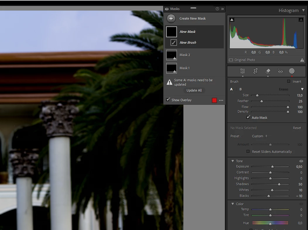 After updating Lightroom Classic to v14 and converted my database, all the edited photos that had a "Subject Mask" applied now have an empty mask with a warning and exclamation mark (!).