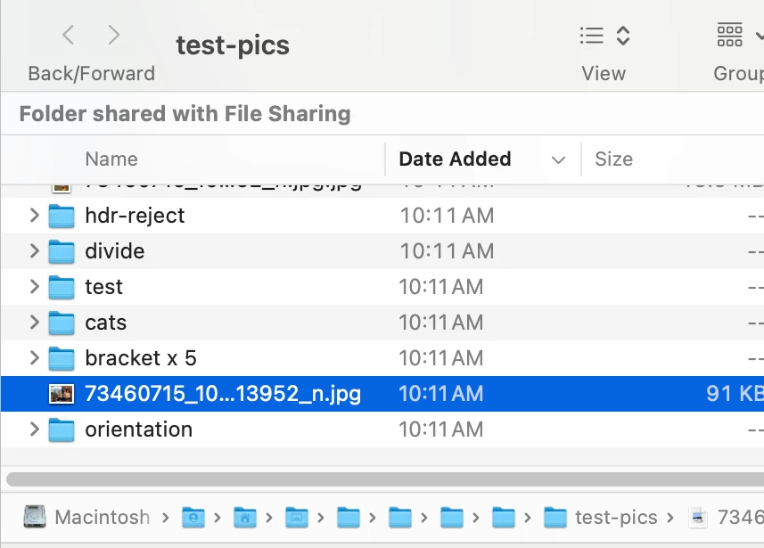 5. Right-click that photo, do Show In Finder, and observe that Finder opens with the photo selected: