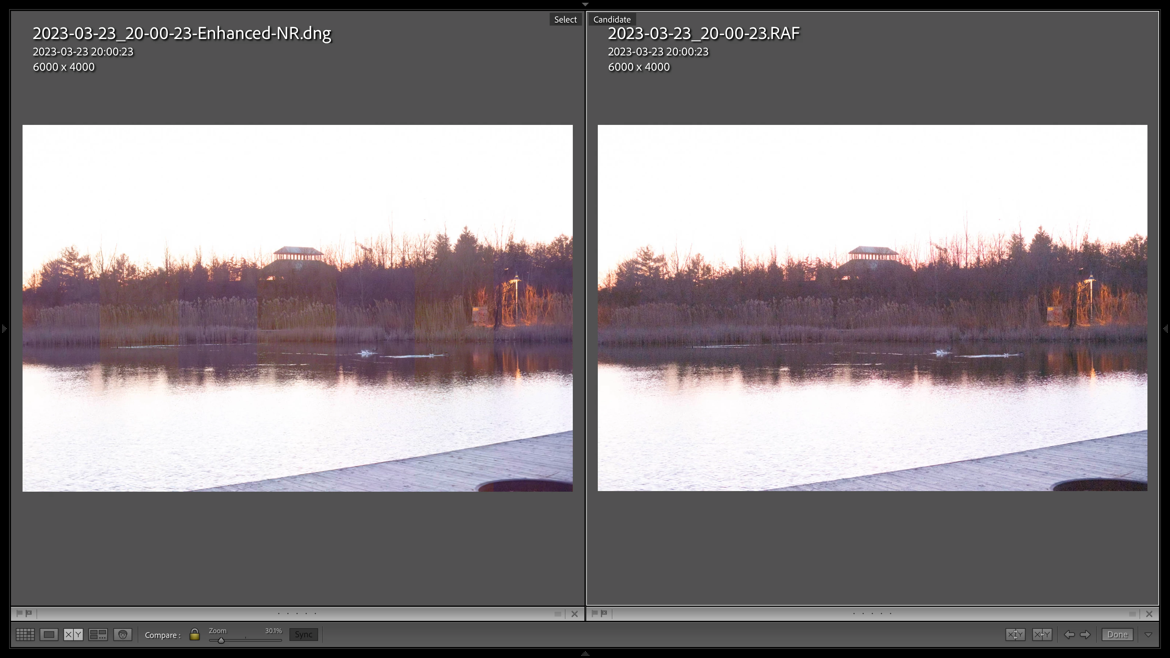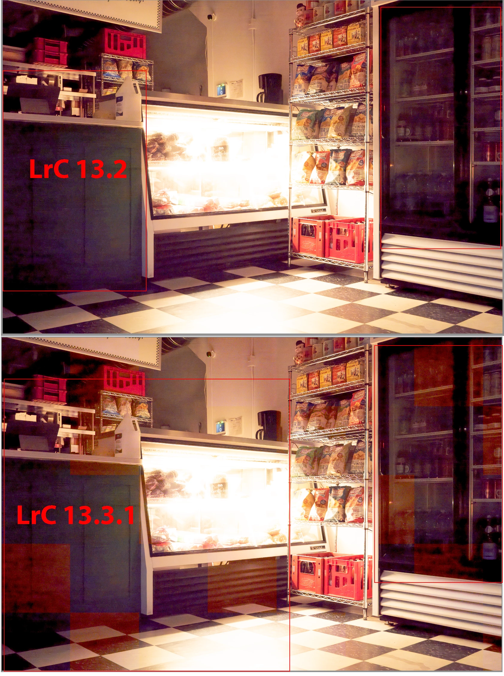 I've attached a screenshot of denoised version from LrC 13.2 and 13.3.1.