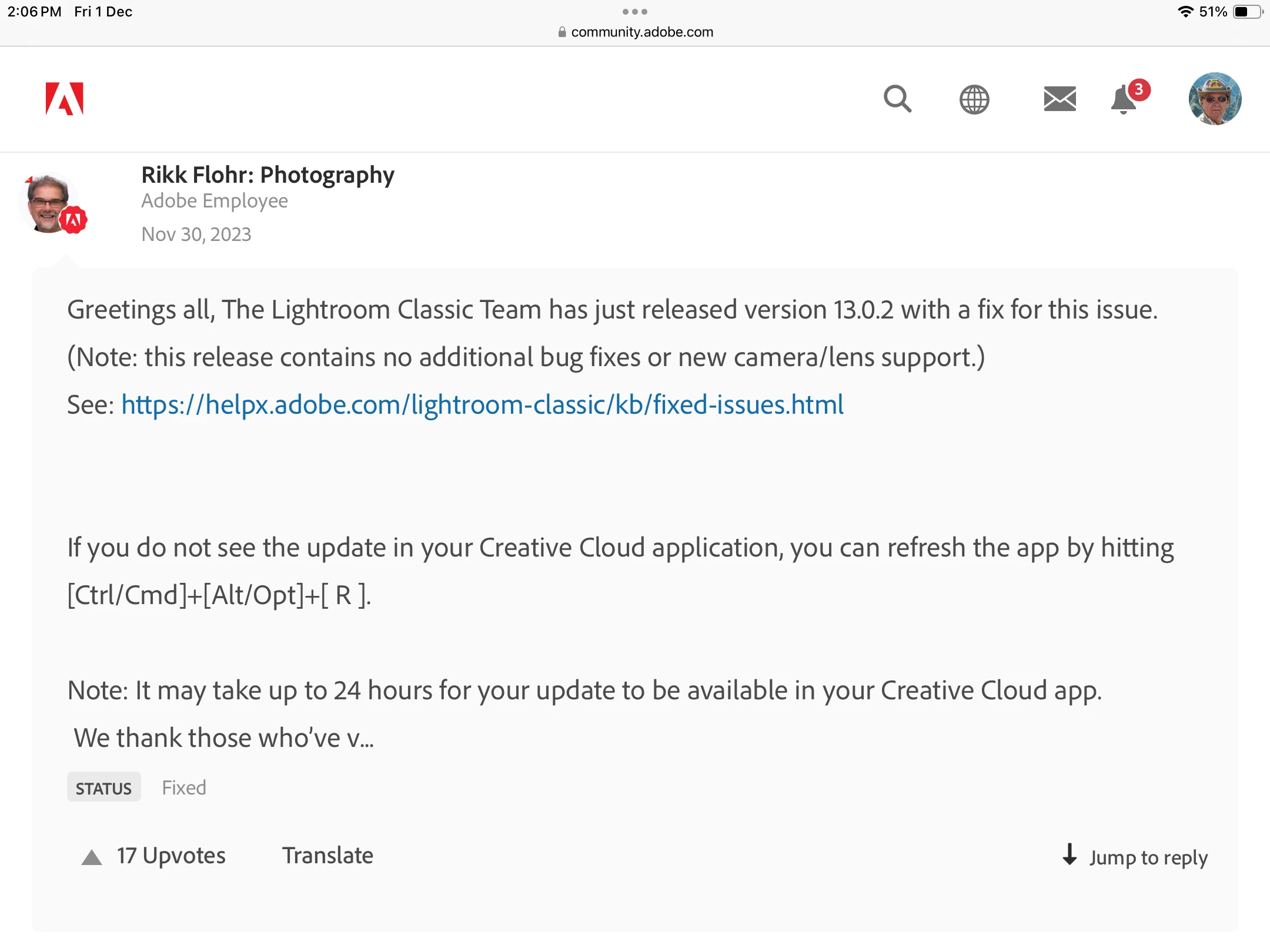 @Giovanni Stoto , ok the main reason most users are unlike to open the thread is Rikk Flohr an Adobe Employee has indicated that a fix for the issue raised in the thread was released a  day or two ago.