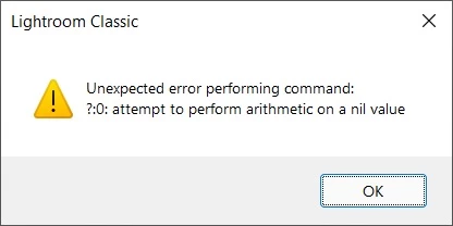 When I'm trying to view system info (Help > System Info...) LrC gives error message: