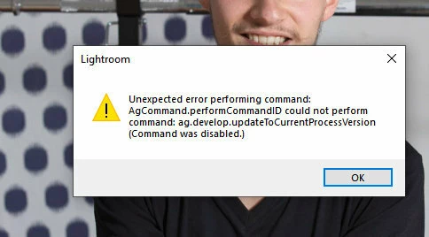 LR CC Classic Version 8: When you use menu "Picture" - "Develop settings" - "Update to current process version" in library view on a photo, which has already the current process 5, it gives an unexpected error (maybee the menu's are labeled a bit different - i have the german verison installed), see picture below: