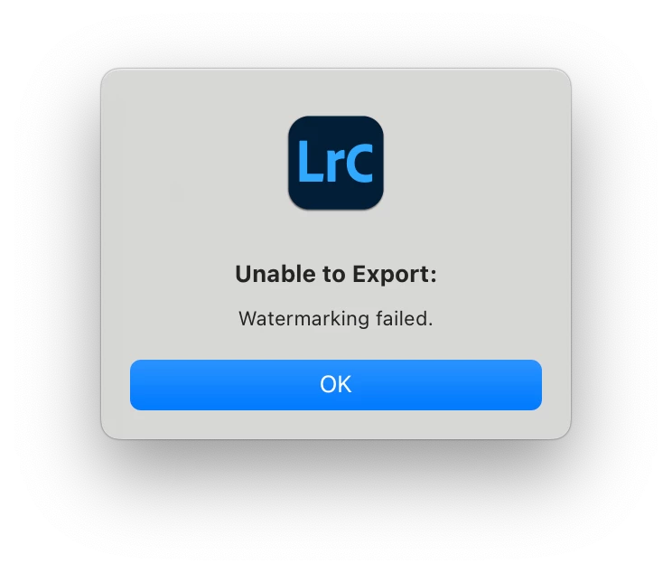 P: (Win/Mac) Lightroom Classic 12.0 Unable to export: Watermarking Failed