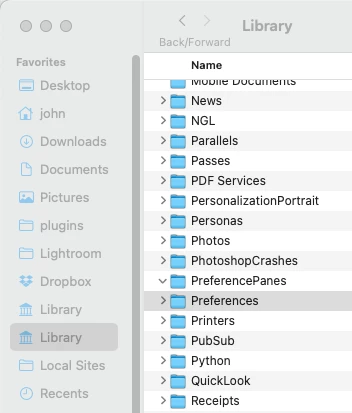 "can not find the file "com.adobe.LightroomClassicCC7.plist" (maps are shown after doing Go>Library in Finder, but the requested file is not one of them)."