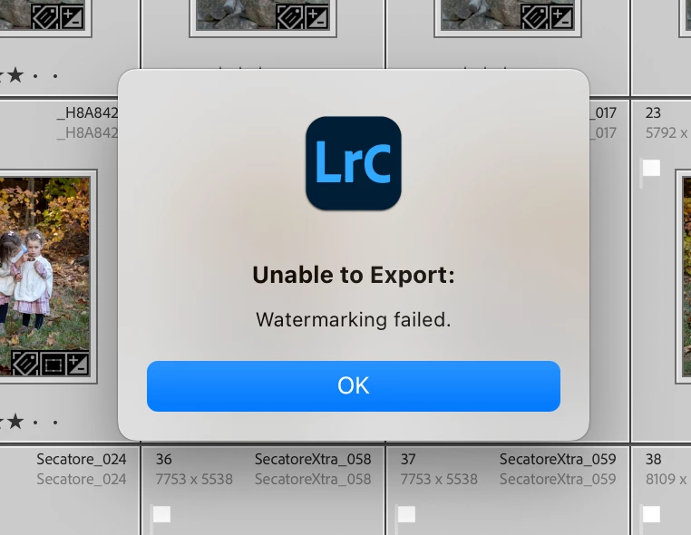 P: (Win/Mac) Lightroom Classic 12.0 Unable to export: Watermarking Failed