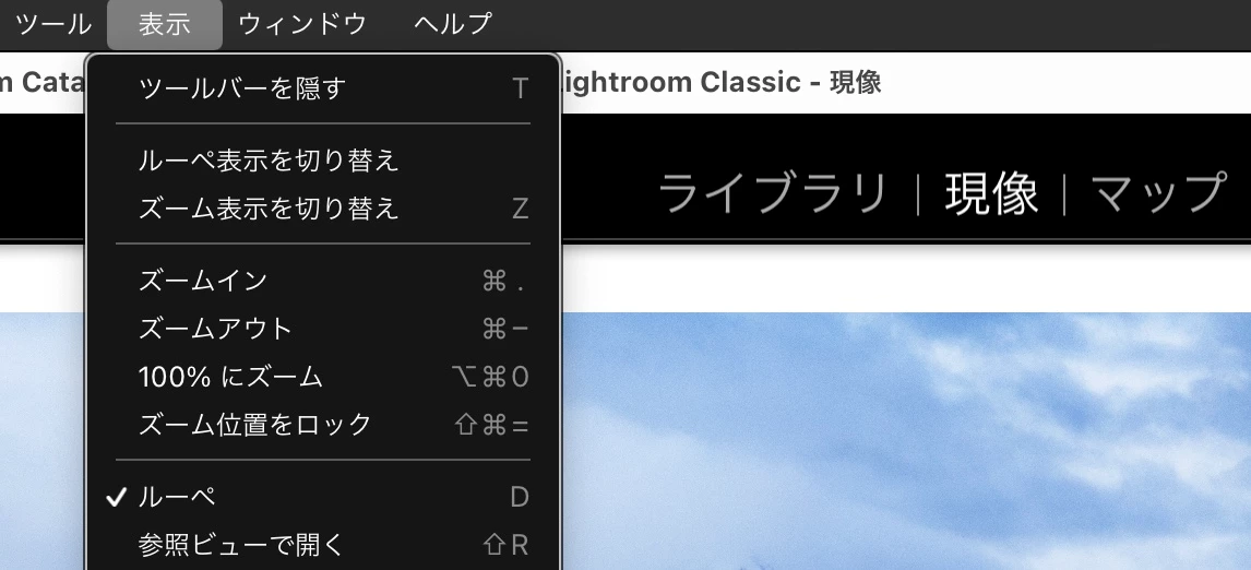 In Japanese (ja_JP), LR has an incorrect assignment for Library Loupe Zoom Out -- it is currently "Cmd + ," but should be "Cmd + -". Typing "Cmd + ," in Library Loupe opens Preferences.