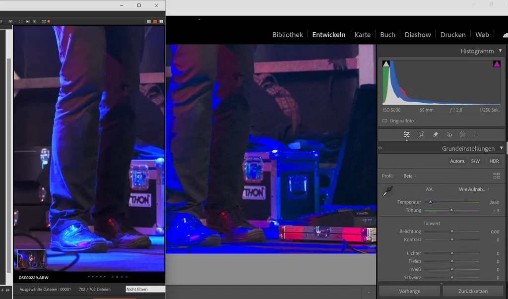 Yesterday I took my first photos with my Sony Alpha 7 V, and before importing them into Lightroom, the images still looked normal—just as I had seen them in the camera. After the import, I noticed blue clipping. I then opened the image in Sony’s Image Edge software, and the RAW files do not show this clipping there. I’ve attached a screenshot—one from the Sony program and one from Lightroom using the beta profile. Could I have overlooked some setting, or could this actually be caused by the beta profile?