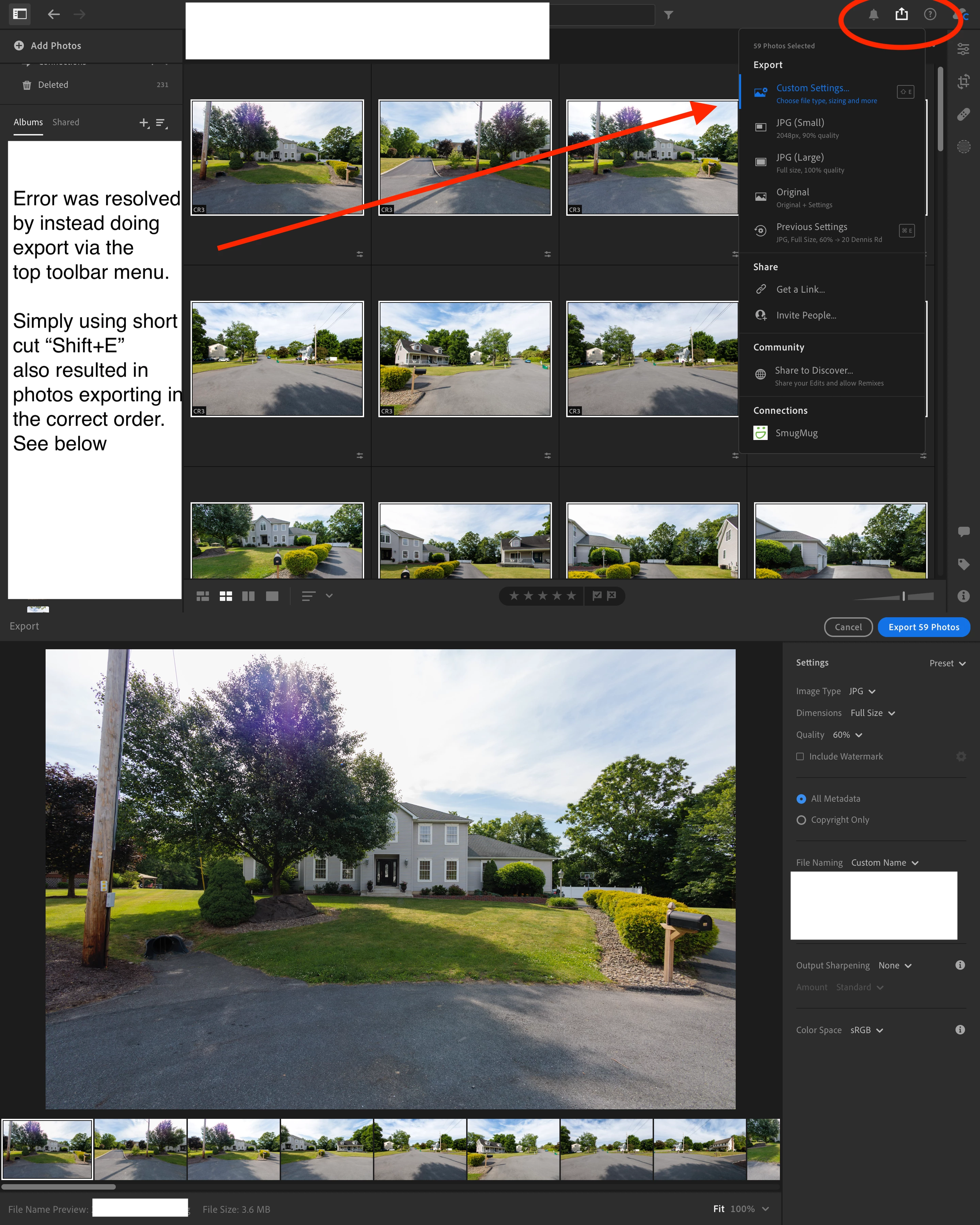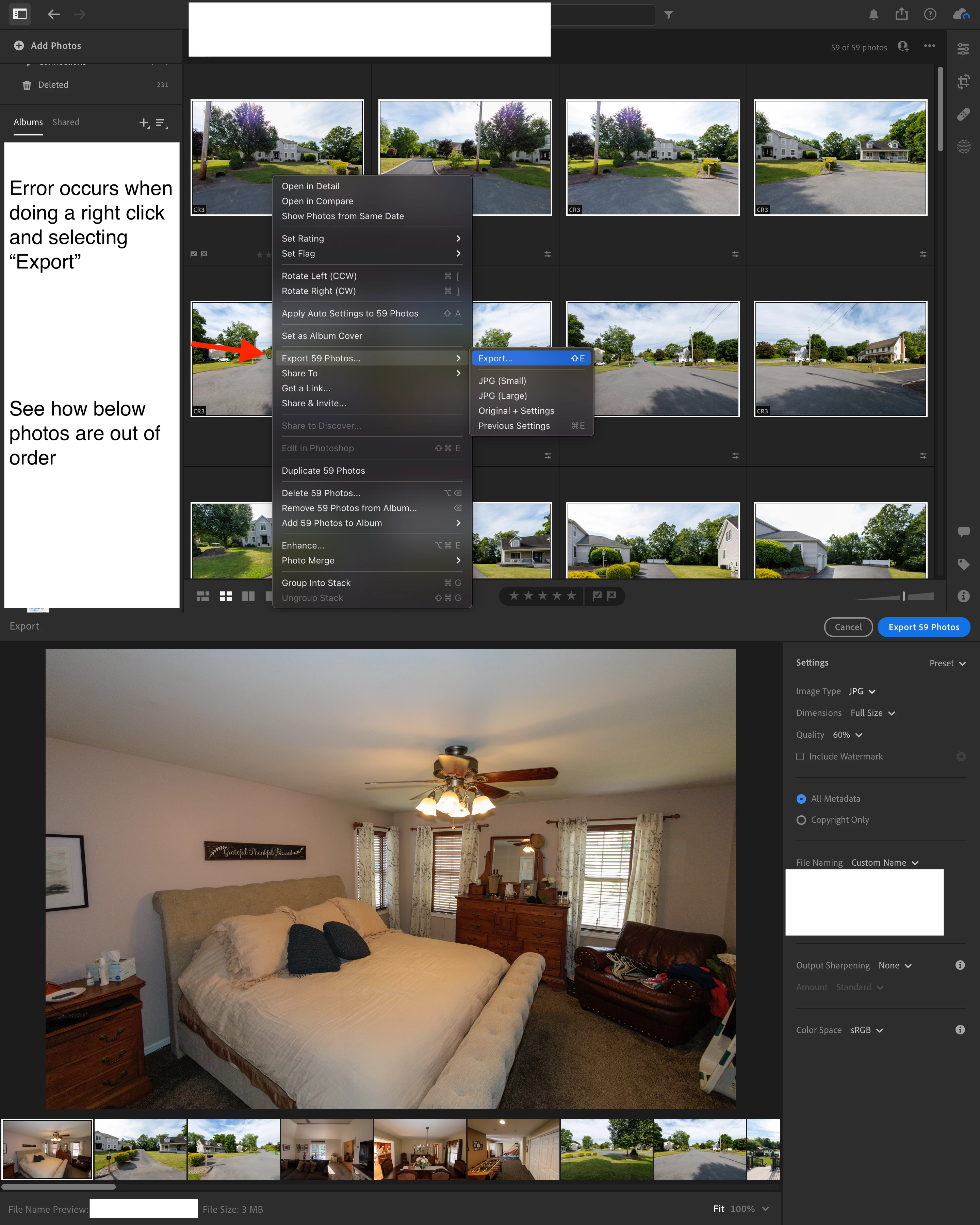 for some reason, lightroom is not exporting in the order shown in the catalogue.