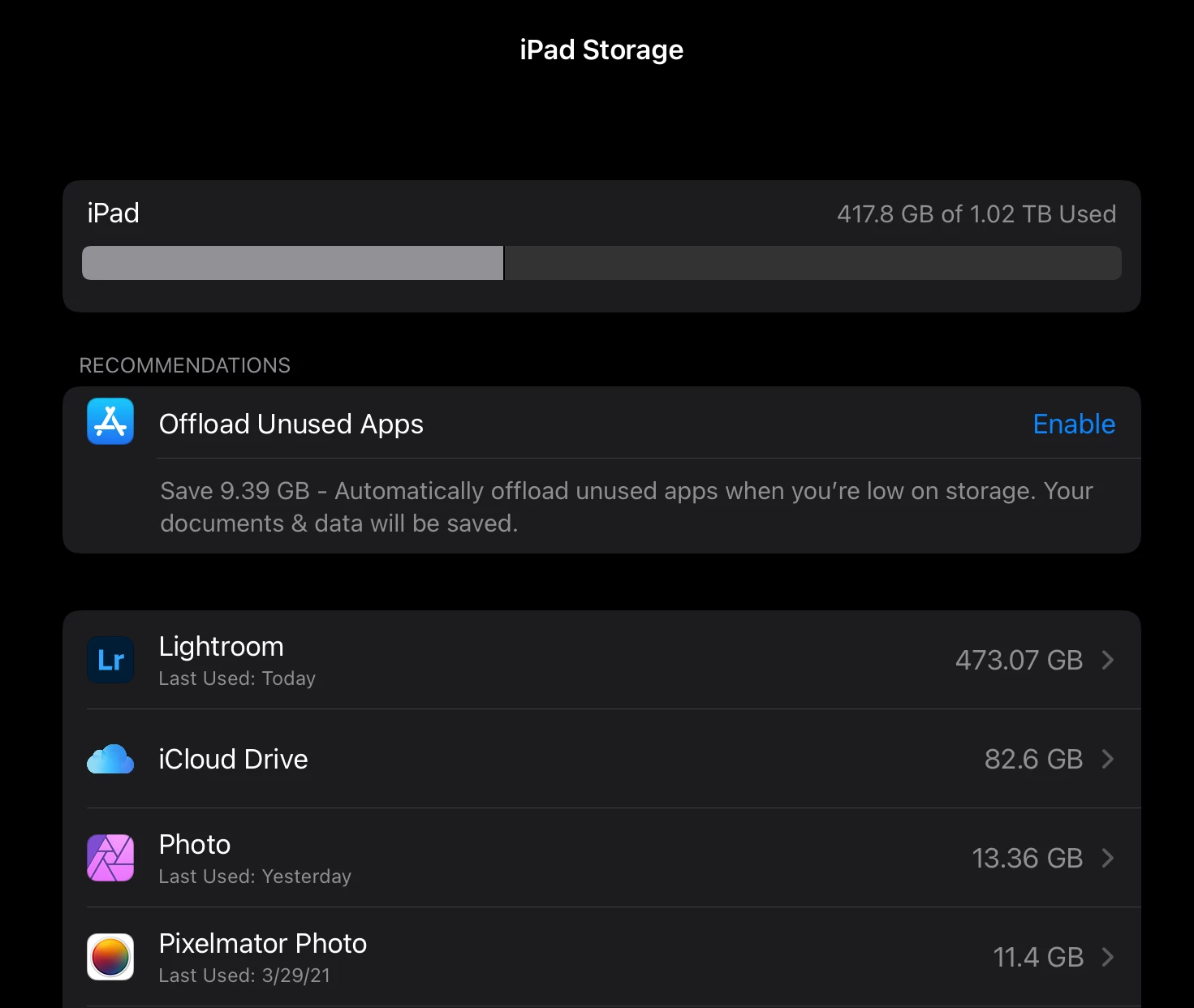 P: 6.2.1 on iPad 2020 12.9 1TB (with 500GB free) - Tried 2x with the same error