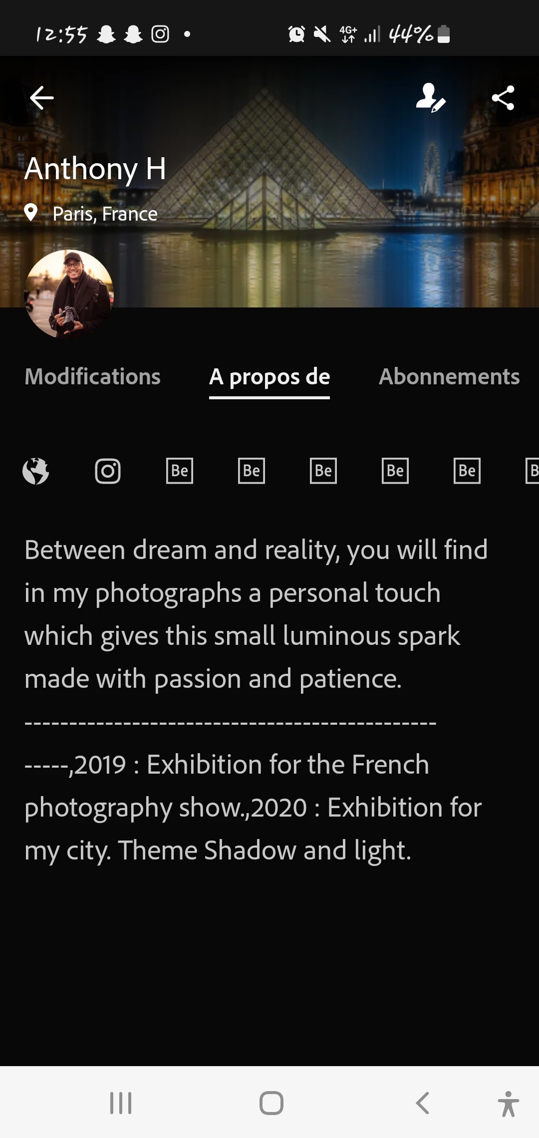 Je voulais signaler un bug lorsqu'on accède à notre profil dans l'application. On passe sur l'onglet "À propos de" jusqu'à celui de "Mention j'aime". Quand on revient sur l'onglet "À propos de" on retrouve un icône "BE" en plus. En faisant la même action à chaque fois, il y a une nouvelle icône "BE". Rien d'alarmant juste un constat.