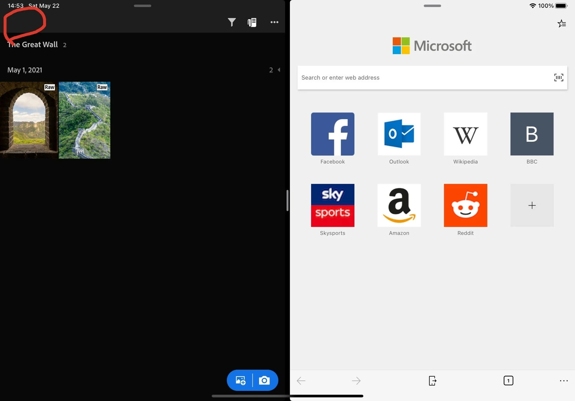- Lightroom for iPad in split view with half width
