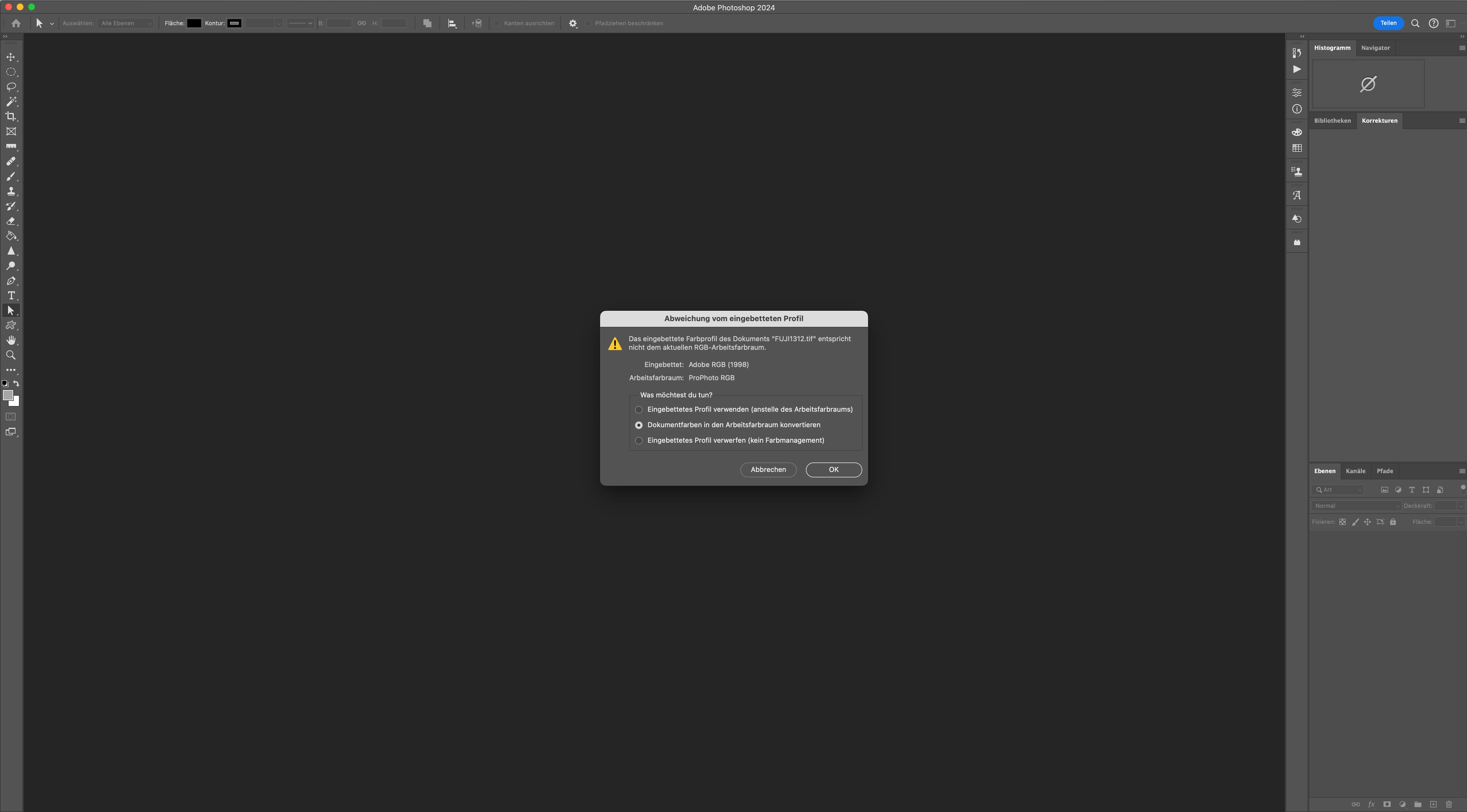 P: Color space option is missing in Export as Tiff