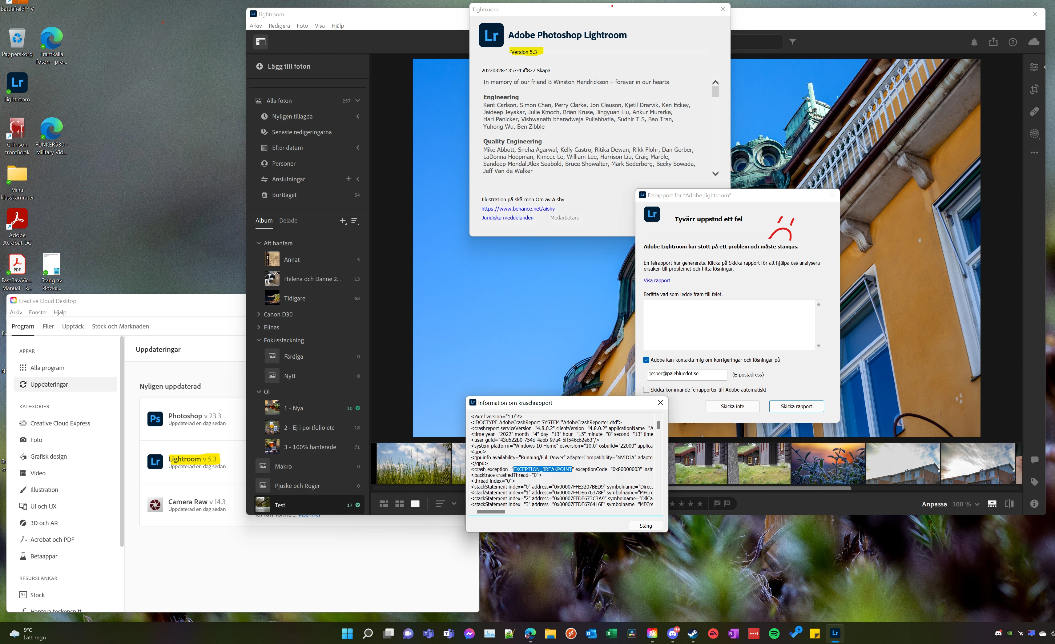 I've reinstalled Lightroom and deleted the cache, to no avail. Any idéas? (Works fine on my other computer, Surface Pro 7, Windows 10.)