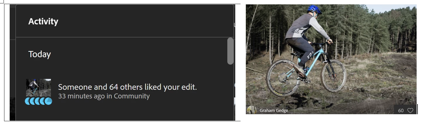 In Lightroom web there is a bell icon for activity which shows the number of likes and who liked a submitted edit. This number is always higher than the number on likes shown on the photo. The attached images show an example, the bell icon is often 5 more than on the photo. The issue is browser independent. Is there a reason for this?