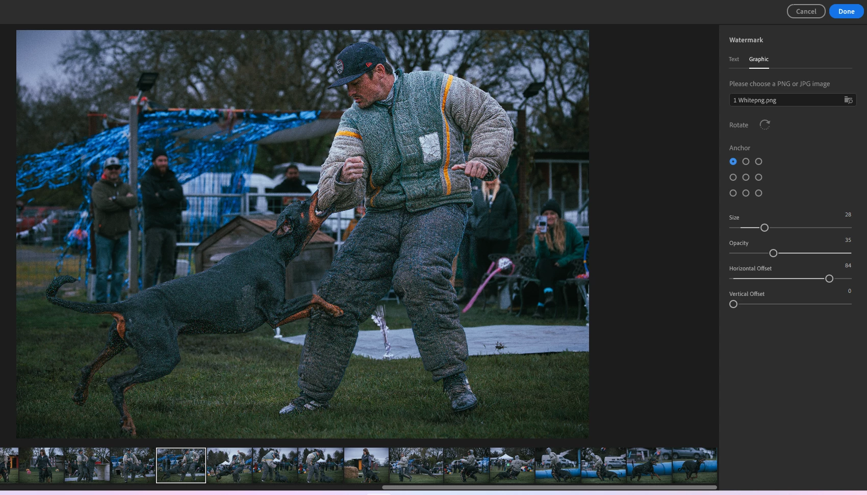 P: Graphical Watermark not visible on image in dialog but is visible in Export preview