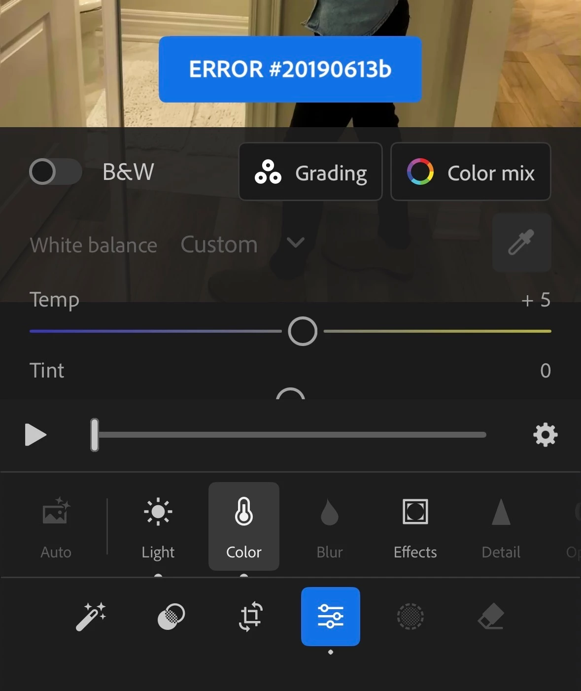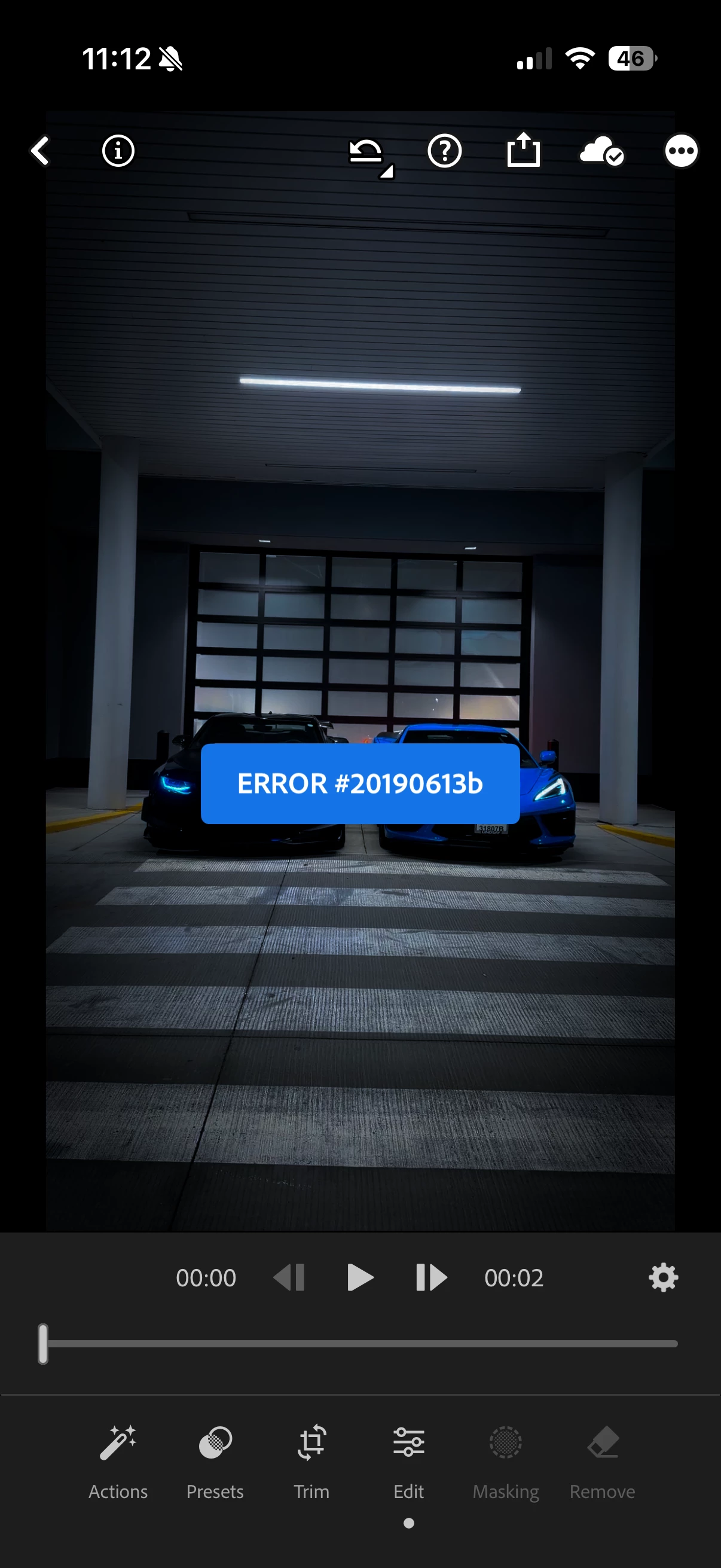 I am experiencing a persistent failure when editing video files in the Lightroom mobile app. While the app functions correctly for photo editing, it triggers two distinct error codes that block critical "write" actions for video metadata, effectively disabling cross-clip editing.