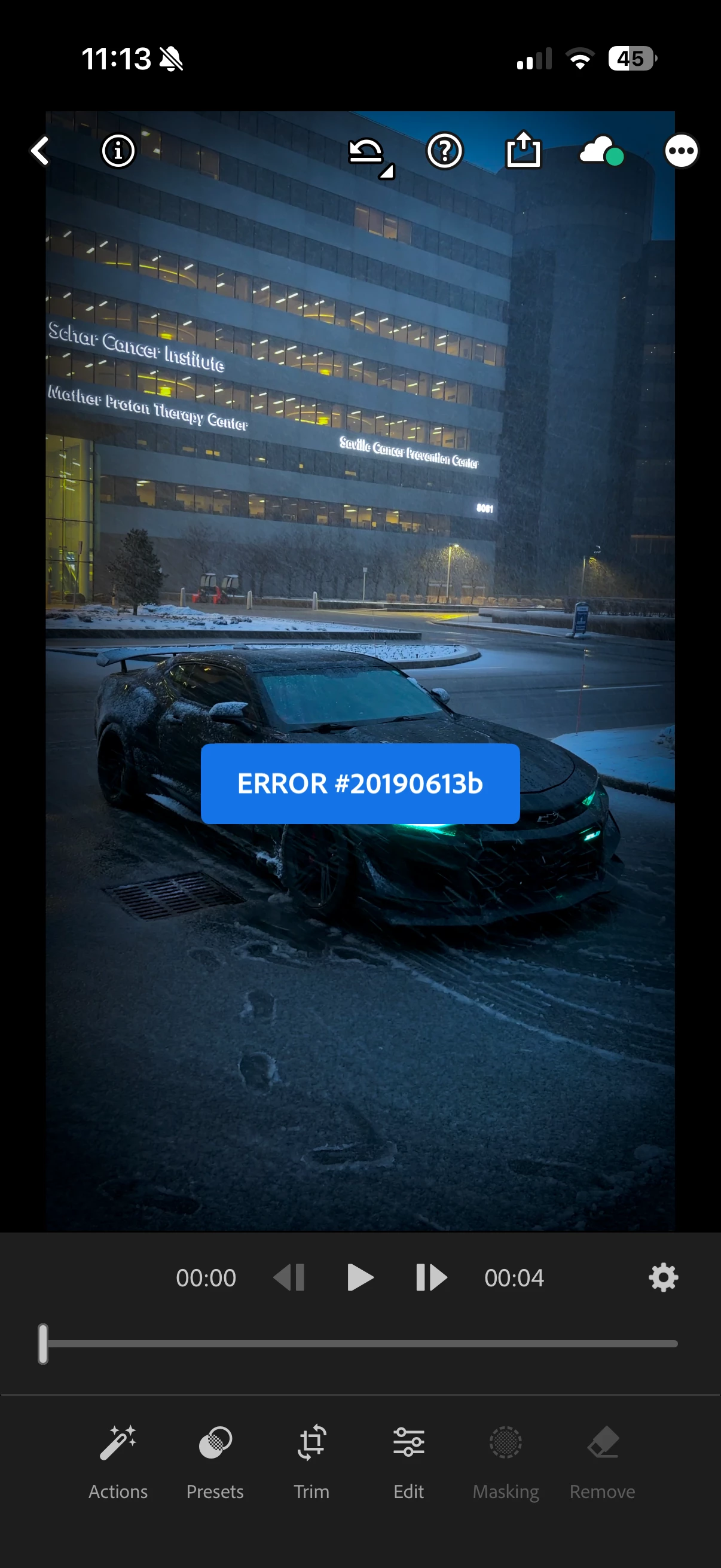 - Error 20190613a: Specific to the failure of saving or creating a new preset from a video.