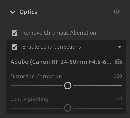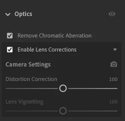 2. Under Edit in Optics section, uncheck Enable Lens Corrections