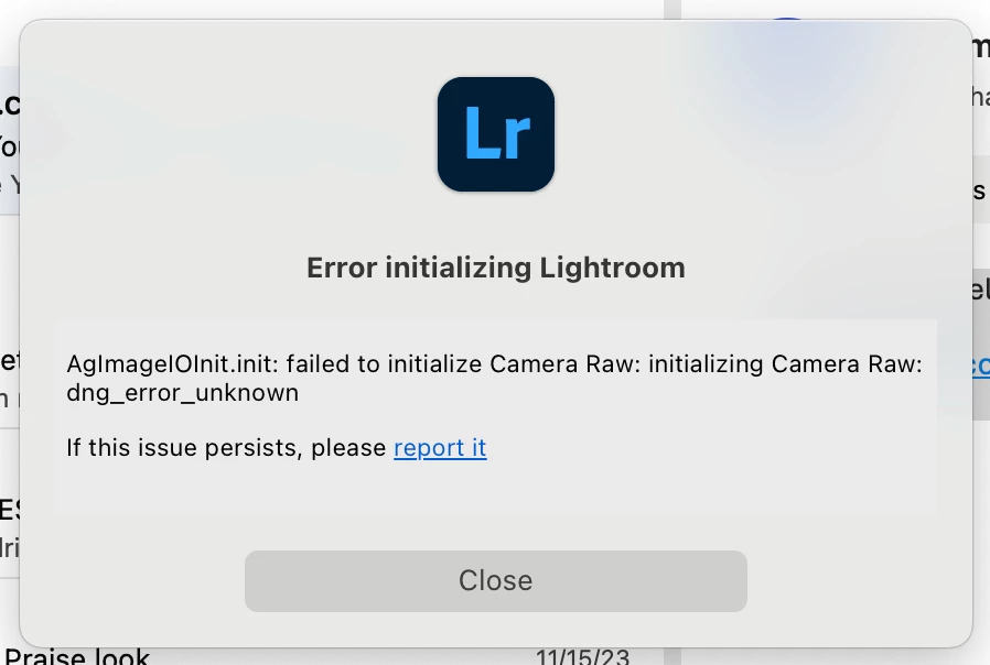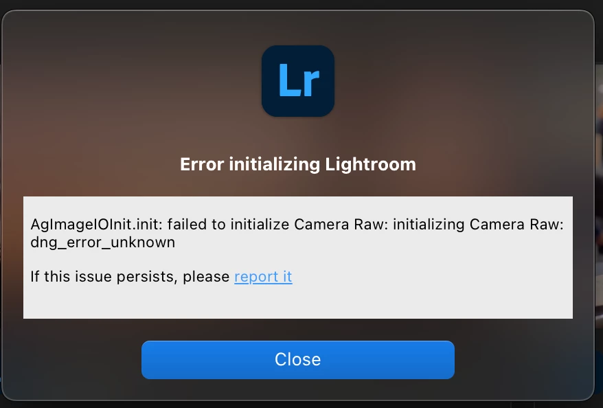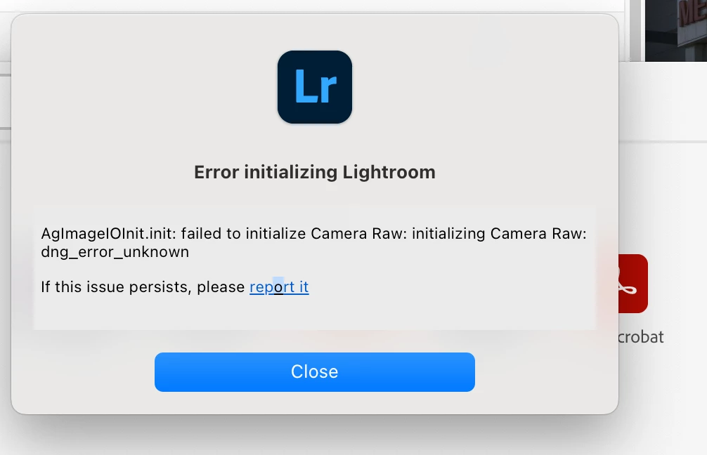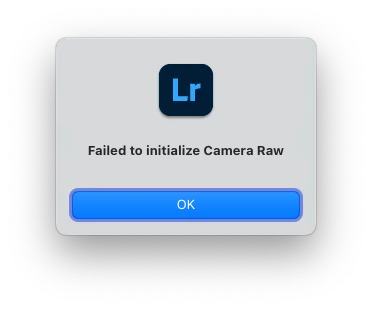 Lightroom Error: Failed To Initialize Camera RAW is keeping me from launching my app.