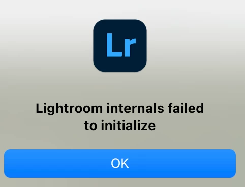 P: Lightroom internals failed to initialize