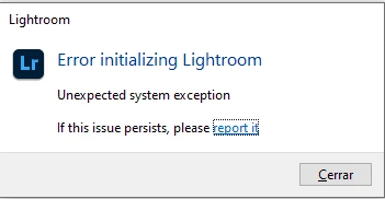 Error initializing lightroom. Unexpected system exception. If this issue persists, please report it. I uninstalled Lightroom CC then restarted my PC. I reinstalled Lightroom but it still doesn't work,