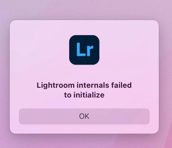 P: Lightroom internals failed to initialize