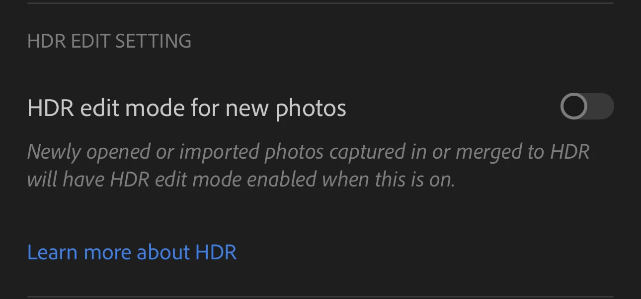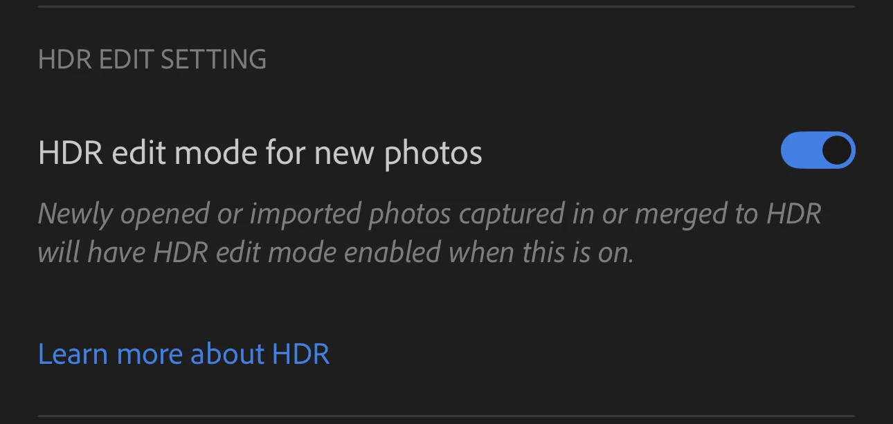 P: Lightroom iOS Import settings: HDR edit mode for new photos cannot be turned on