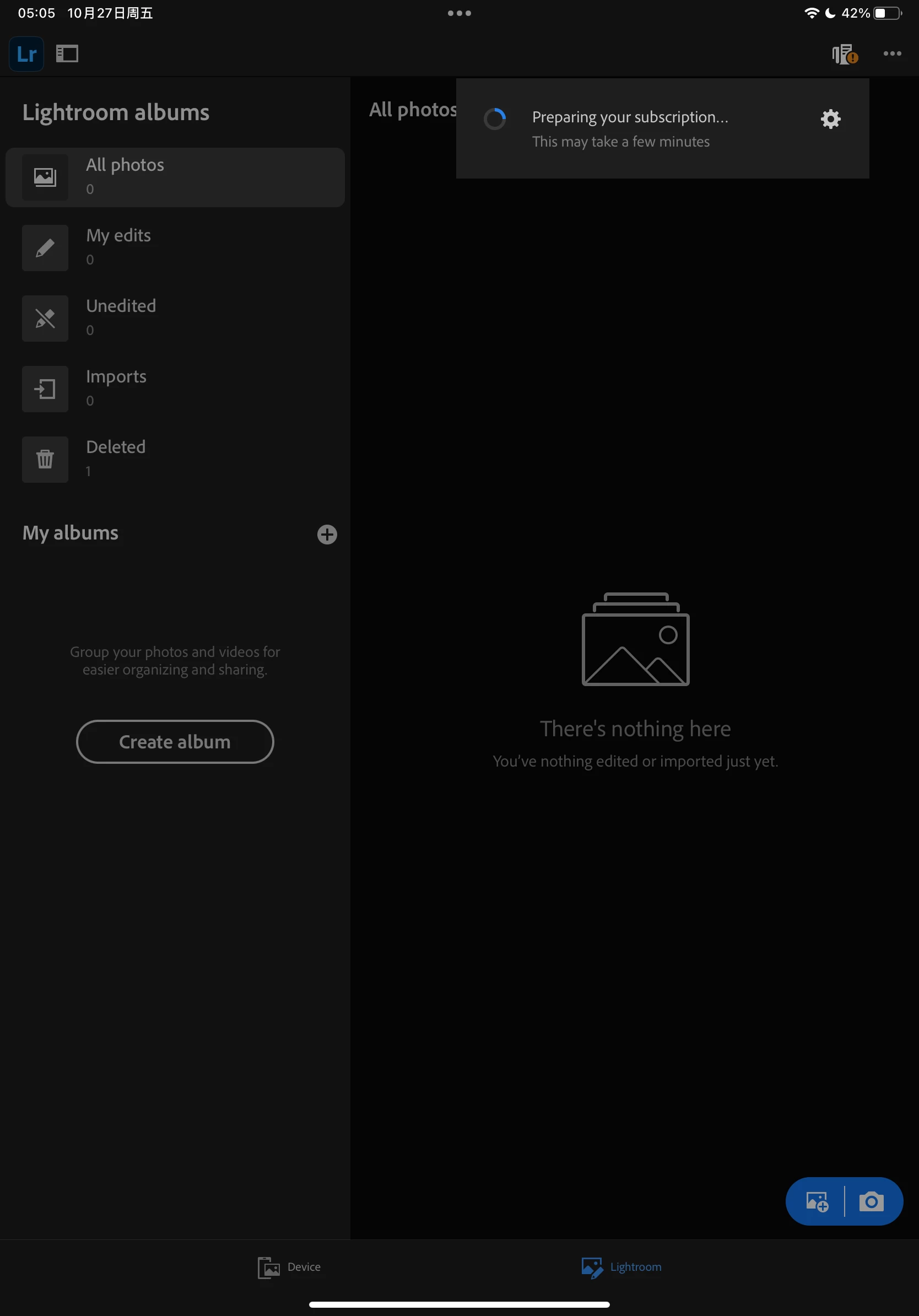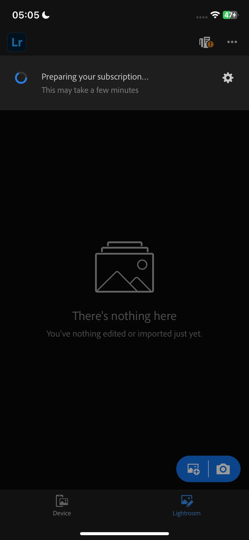 P: Lightroom on iOS stuck on preparing your subscription
