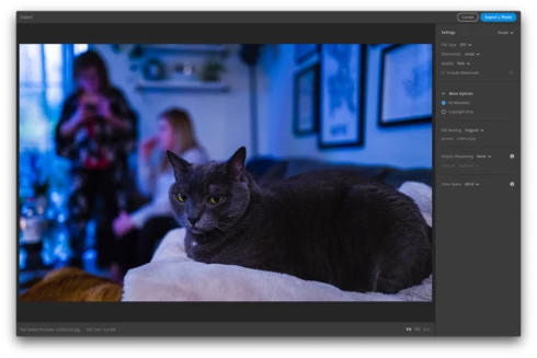When exporting from Lightroom CC on macOS, the exported JPG takes on remarkably different colors (it looks like a lower/bluer color temperature, but I'm not precisely sure). The difference appears within the Lightroom CC export preview prior to exporting, as well as with the exported image when opened in other applications. Different images have different levels of impact, but I've seen visible differences in most of my images. The issue appears regardless of what Color Space is selected for the exported JPG.
