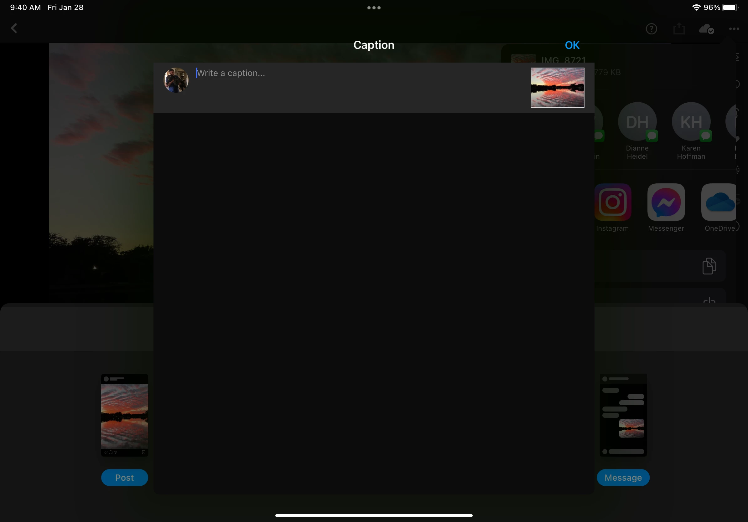 P: Share to Instagram Keyboard/buttons don’t work when iPad is in landscape view