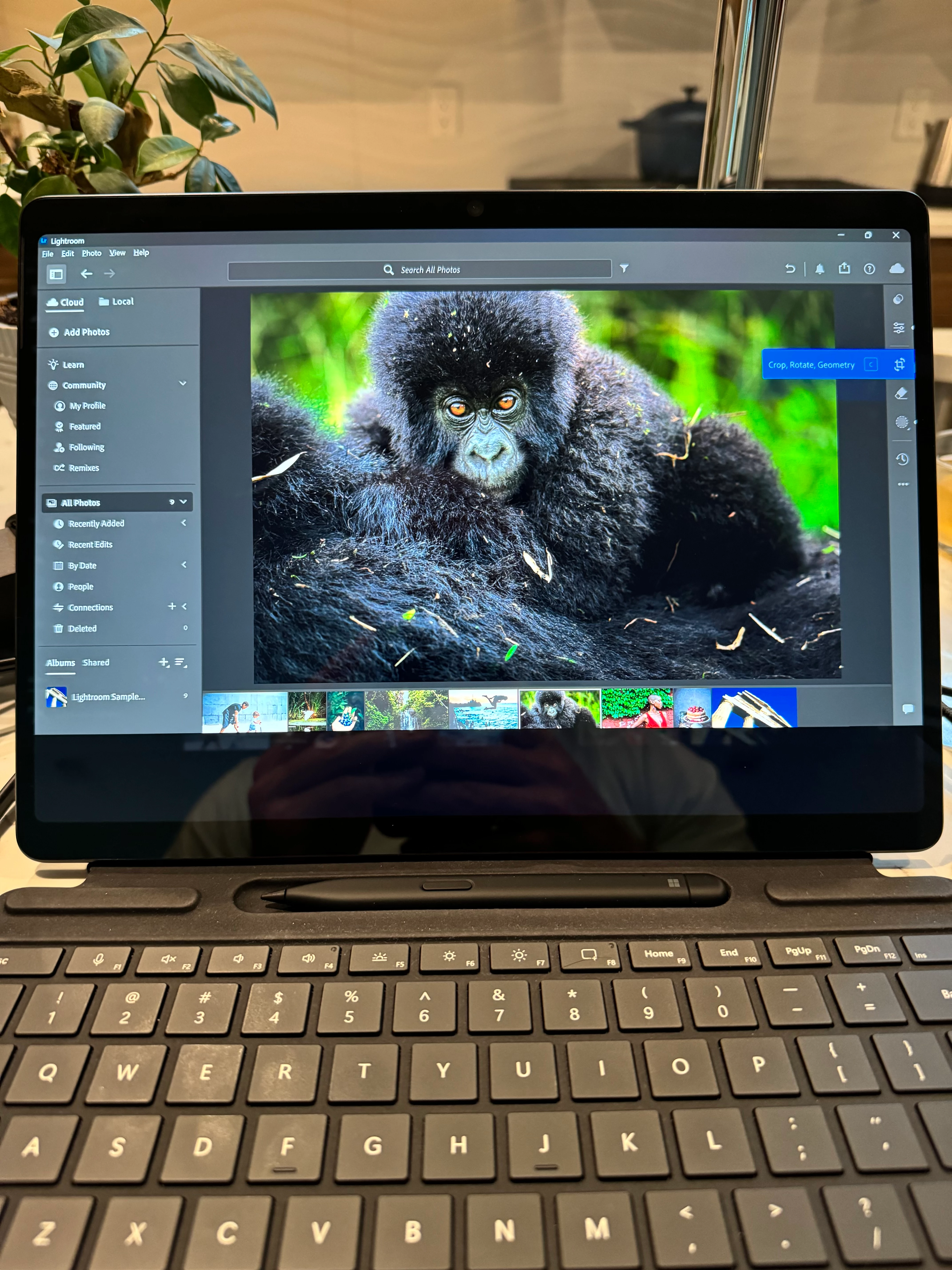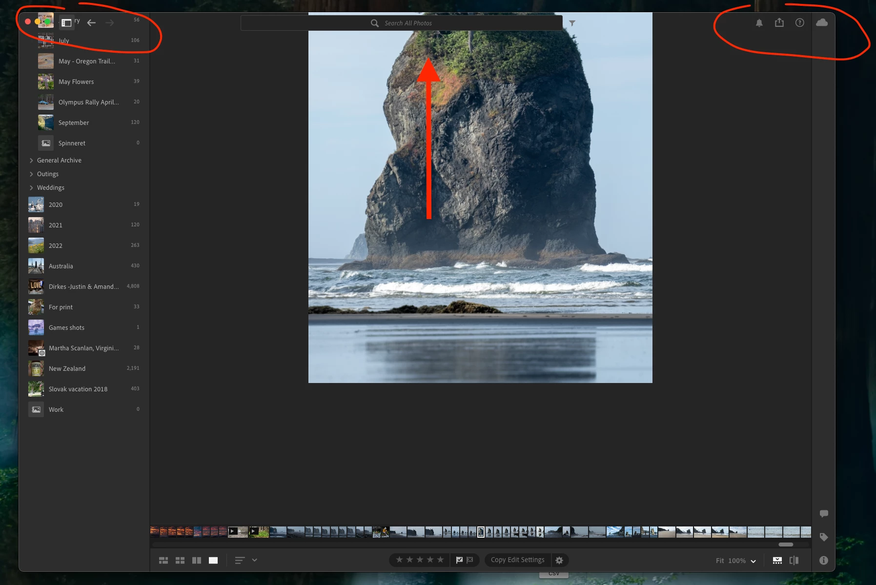 Simply the bottom of my screen is force hidden when a function from the right pane of the software is not selected. If the edit or similar function is selected then the full screen is visable. I've searched around at length and can't seem to find any solutions. As soon as i go into a detail view on a photo the bottom of my screen is hidden, yet i can still click icons in my toolbar that are hidden from view.