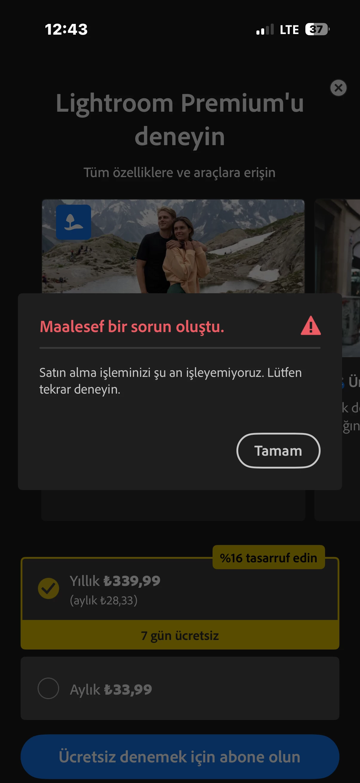 Premium abonesi olmak isterken ödeme tarafında hata alıyorum.