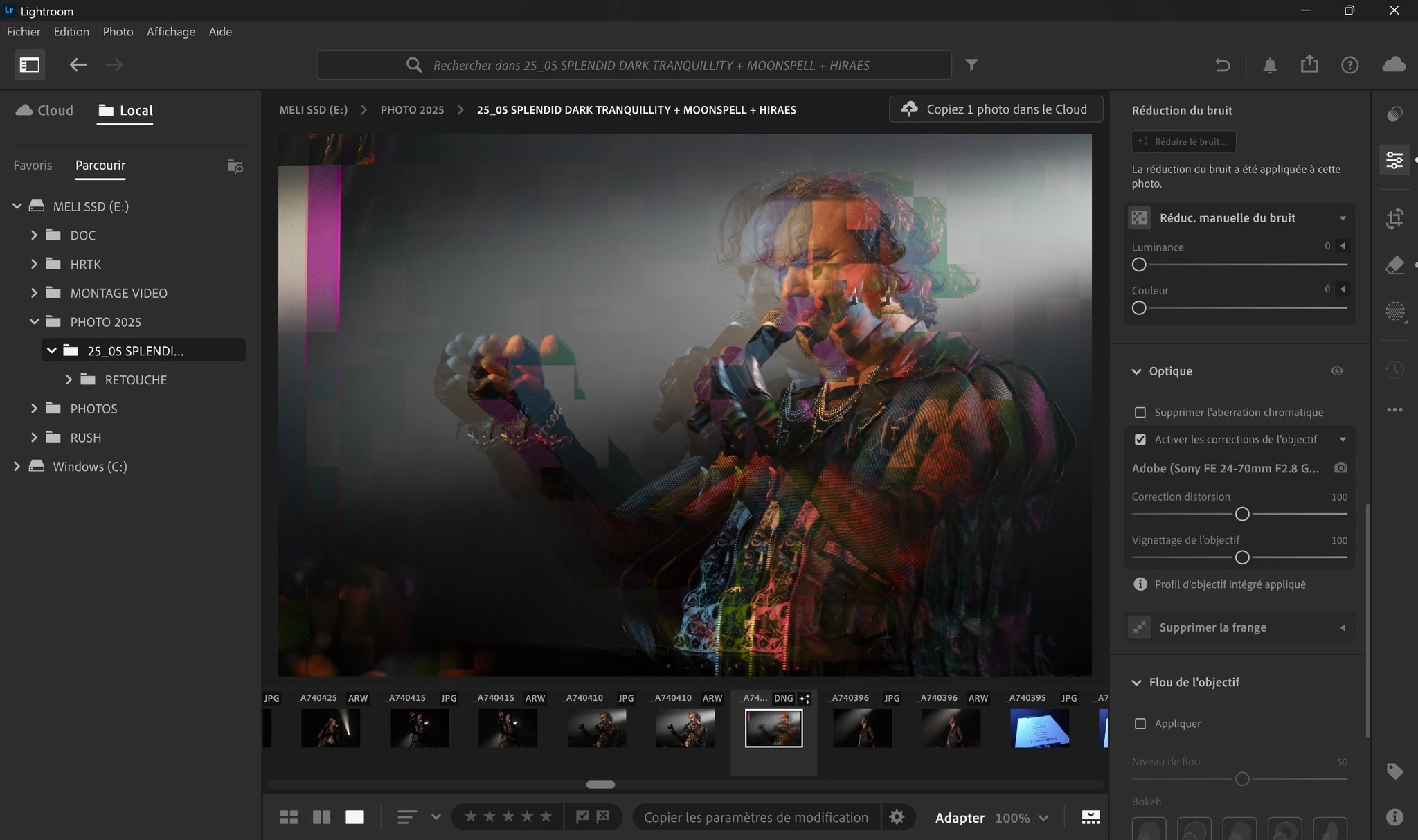 Et là impossible d'utiliser la réduction de bruit par exemple, voyez le résultat. J'ai désactivé le processeur dans les options : toujours le même résultat.