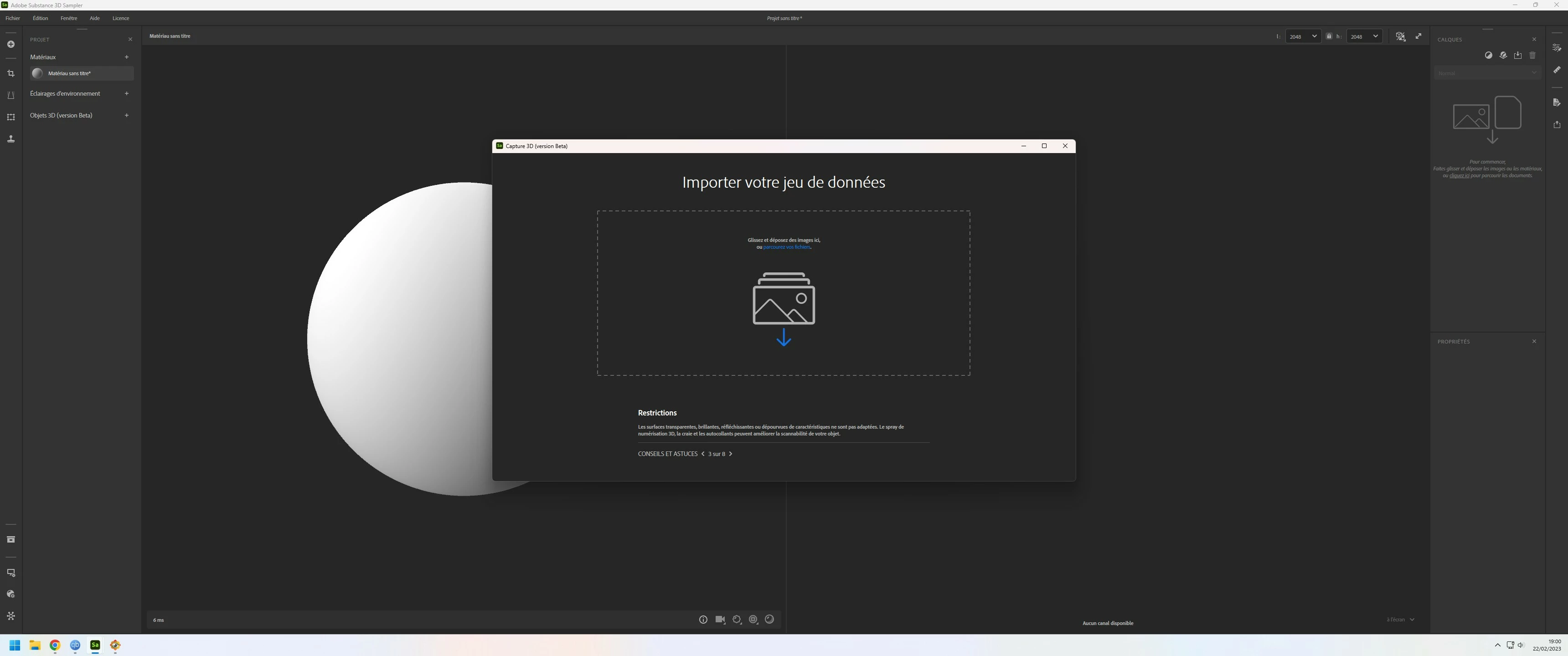 I've tried 3 times import about 1100 photos (ARW) to create a 3D objects but each times, after 5-10mn, Sampler takes me back at Import screen with nothing inside the window.