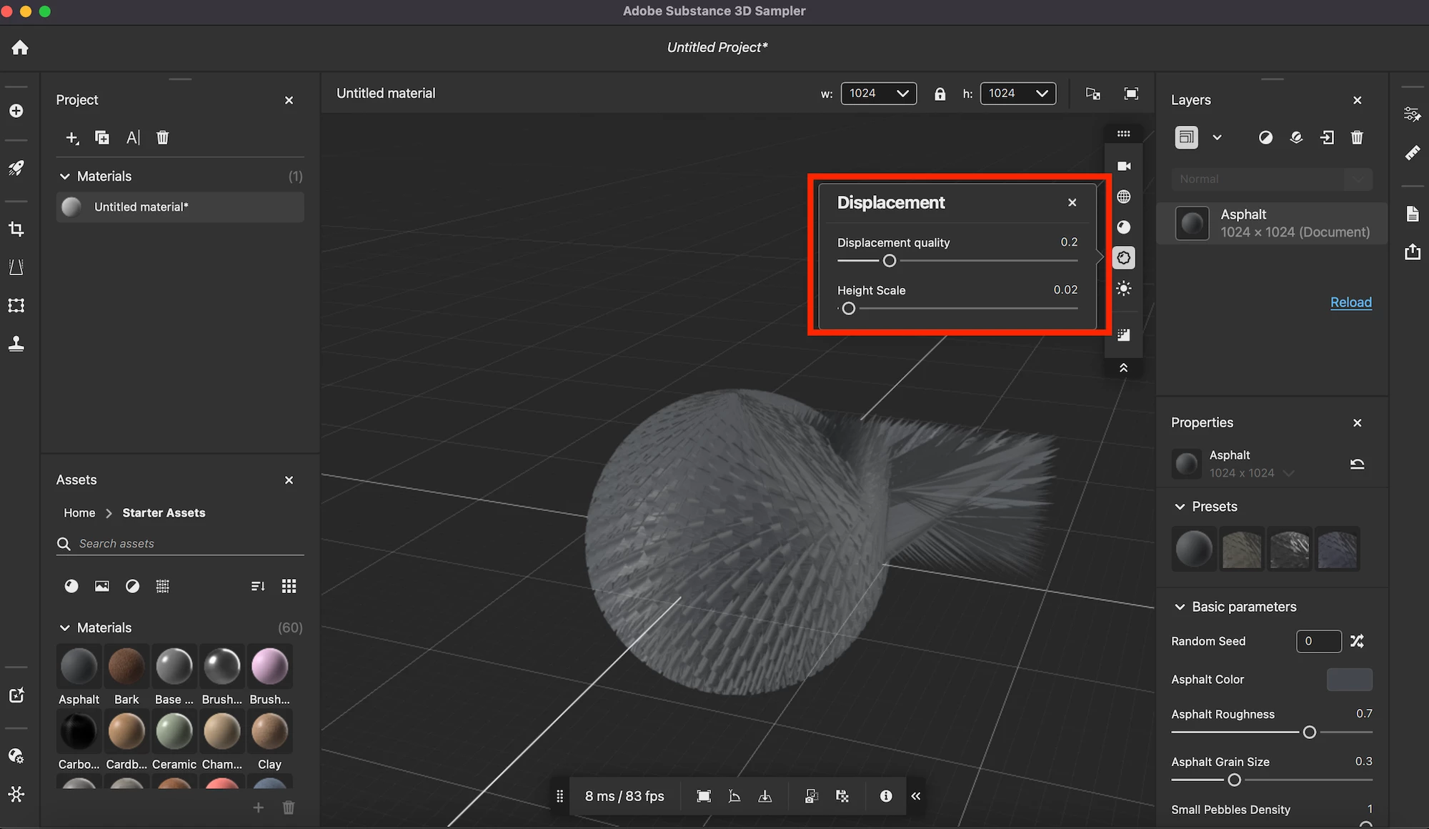 Open Sampler, create project. Drop pre-made material onto sphere mesh and get really wonky / glitchy surface behavior: spikes and scales.  Graphics issue?