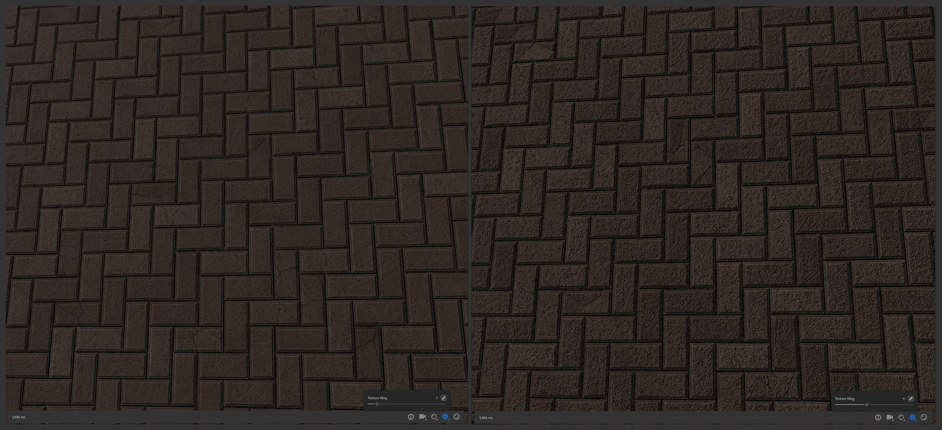 Hello there! There is a small issue when tiling a material inside the 3D Viewport of Sampler. When setting the tiling higher, the normal intensity increases aswell. Here you have a picture comparing the same texture area with a different tiling setting.