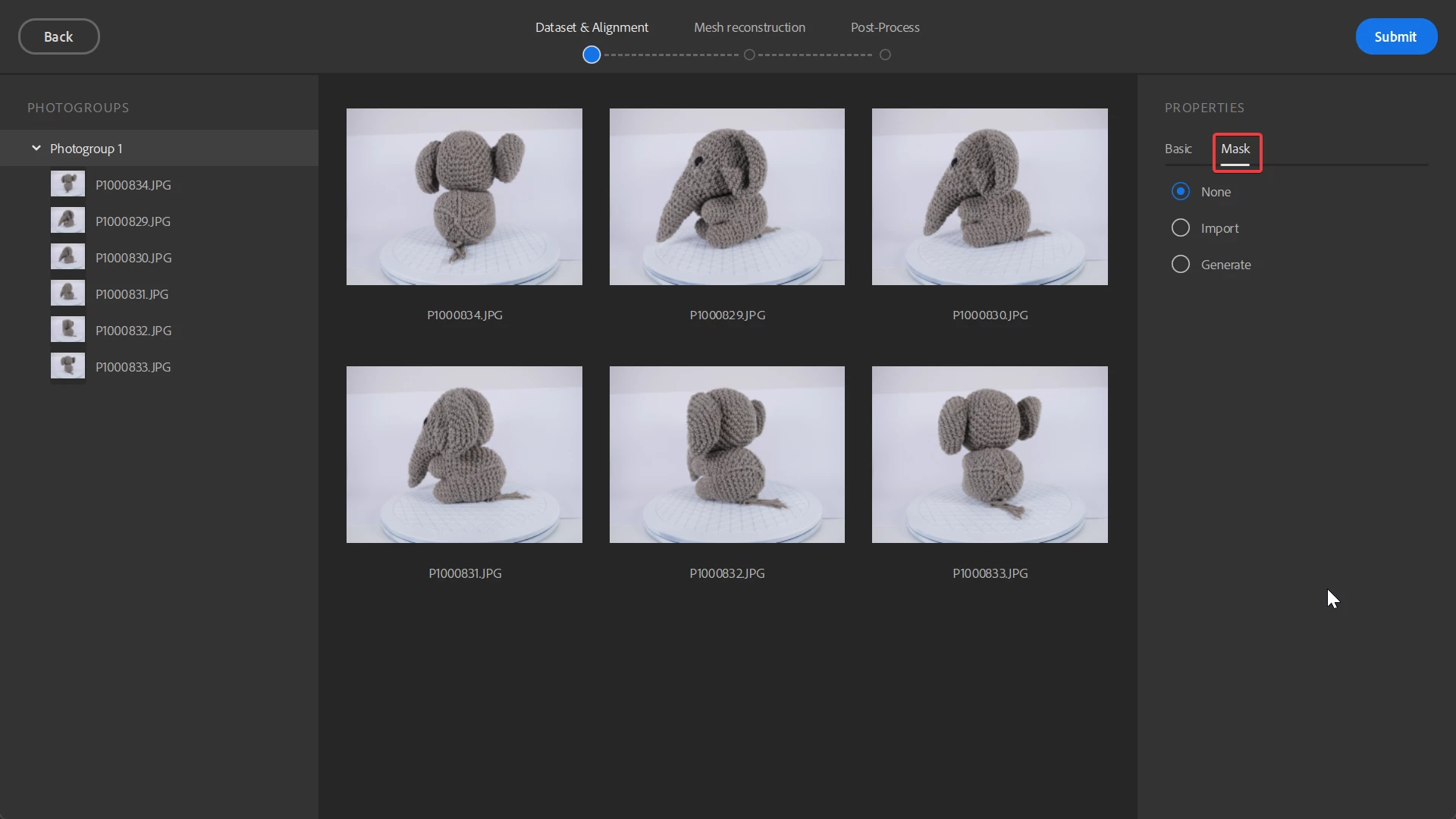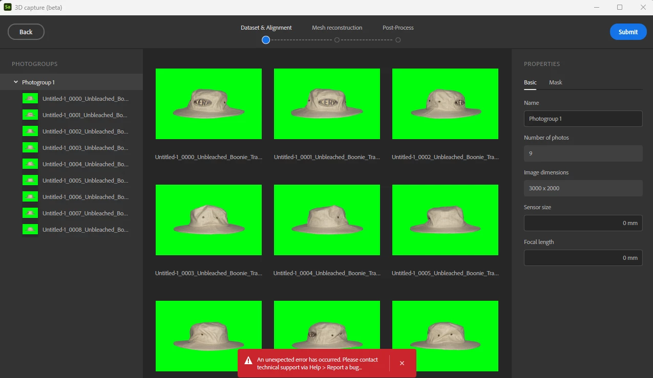 I've just got started on Adobe Sampler and I'm trying to convert a set of images from a product photoshoot into a 3D object.