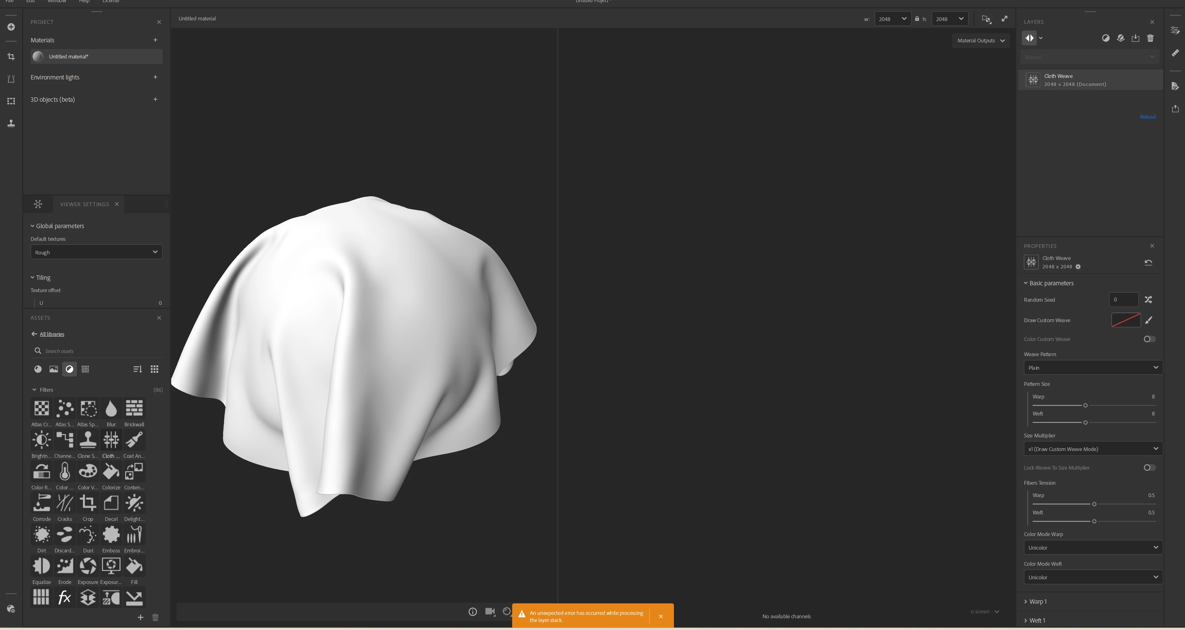 As you see, I move Cloth Weave to my layers, and an expected error has occured.