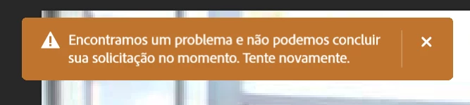 “Encontramos um problema e não podemos concluir sua solicitação no momento. Tente novamente.” (We encountered a problem and cannot complete your request at this time. Please try again.)