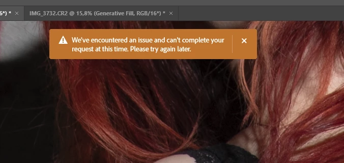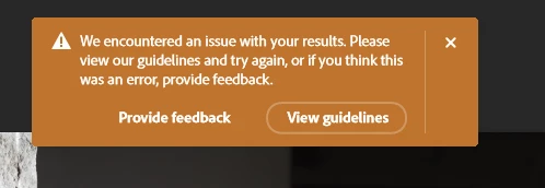 Every time I try to use Generative Fill, I receive one of the following error messages: