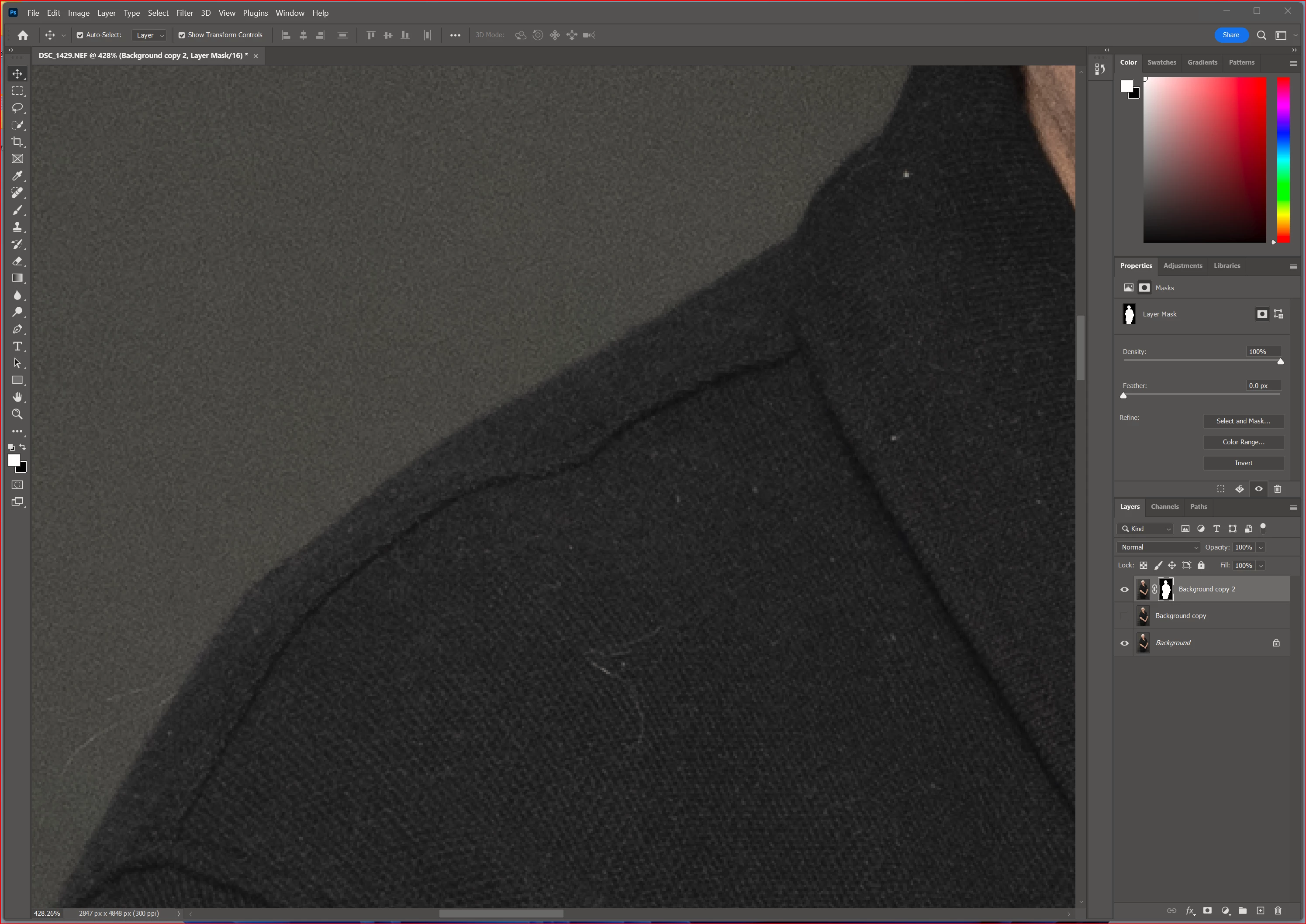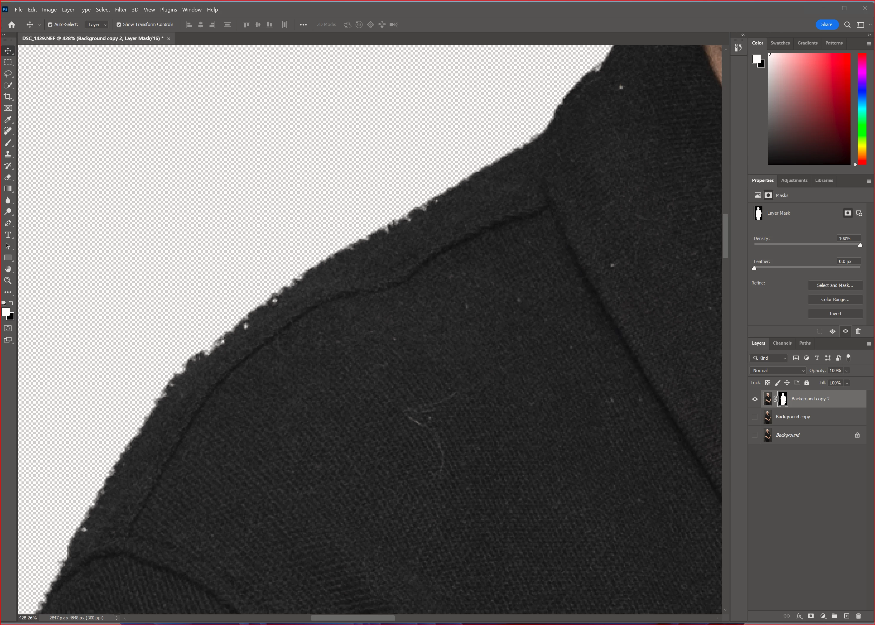 I'm posting here the selection zoomed in to show how the background removal tool leaves holes in the subject and is not smooth which is the same as in PS.