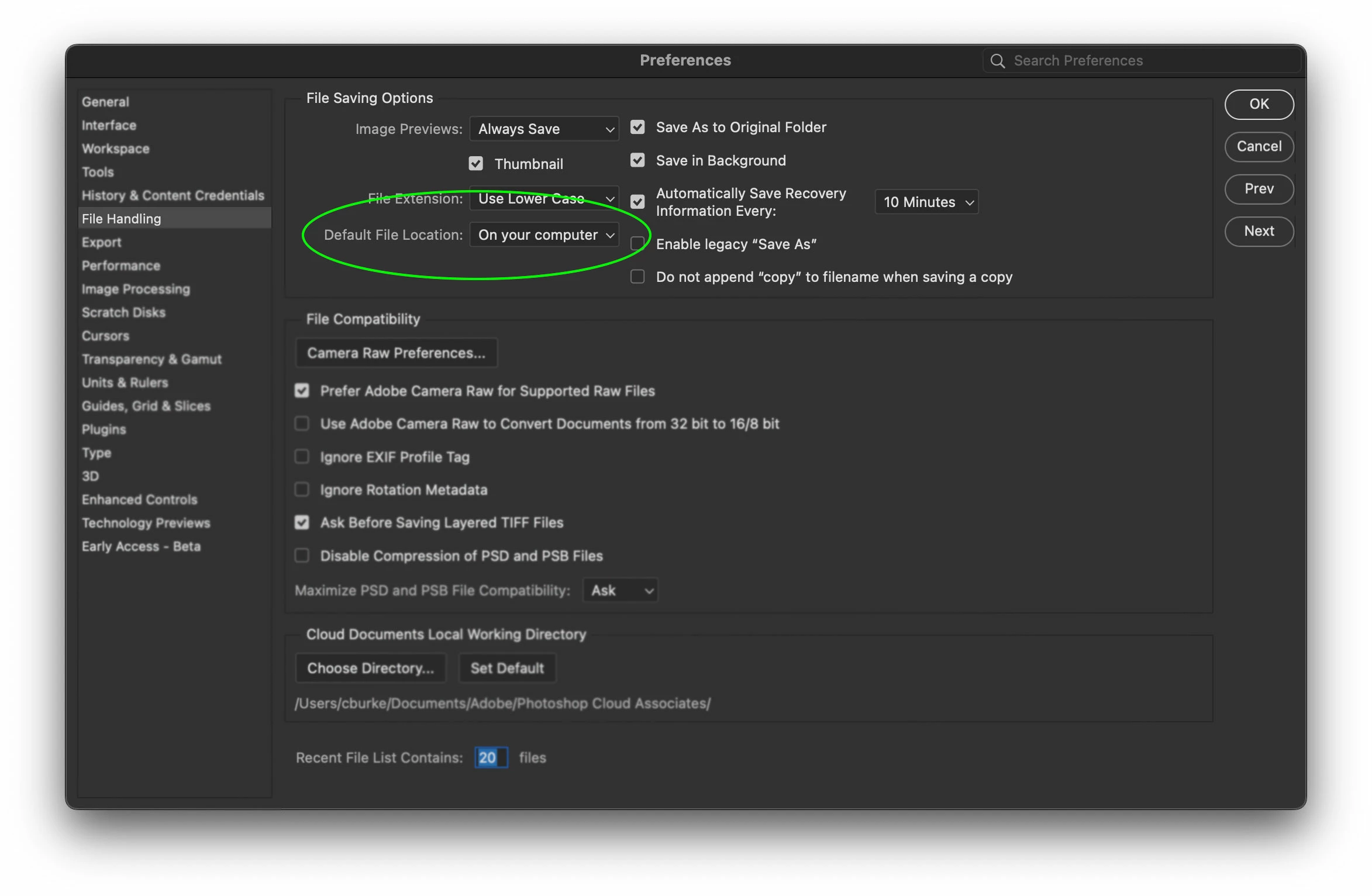 7. Be sure to change your settings back to saving files to your computer in Settings > File Handling: