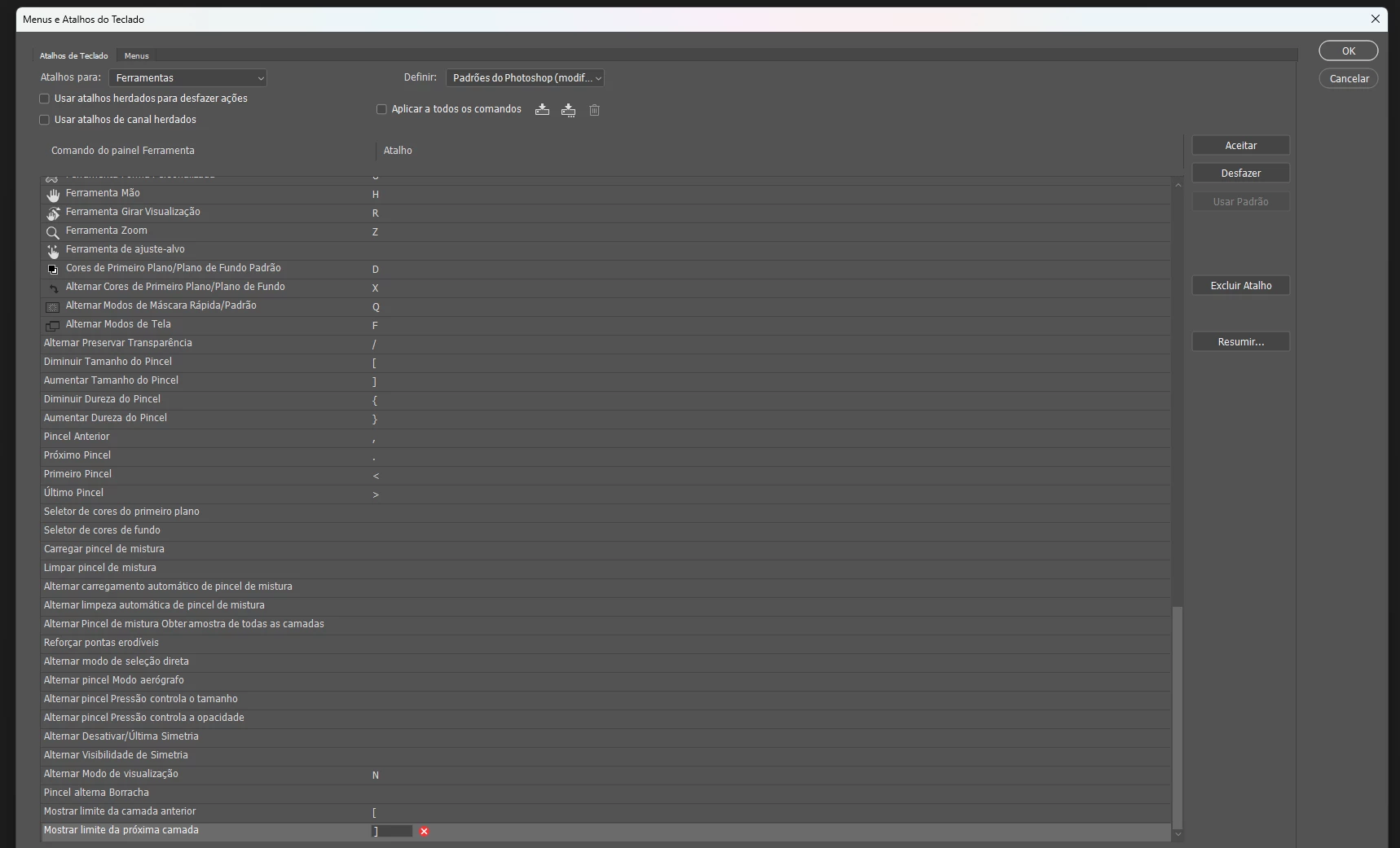 Solução mudar as opções com a mesma tecla nos ATALHOS do TECLADO.
