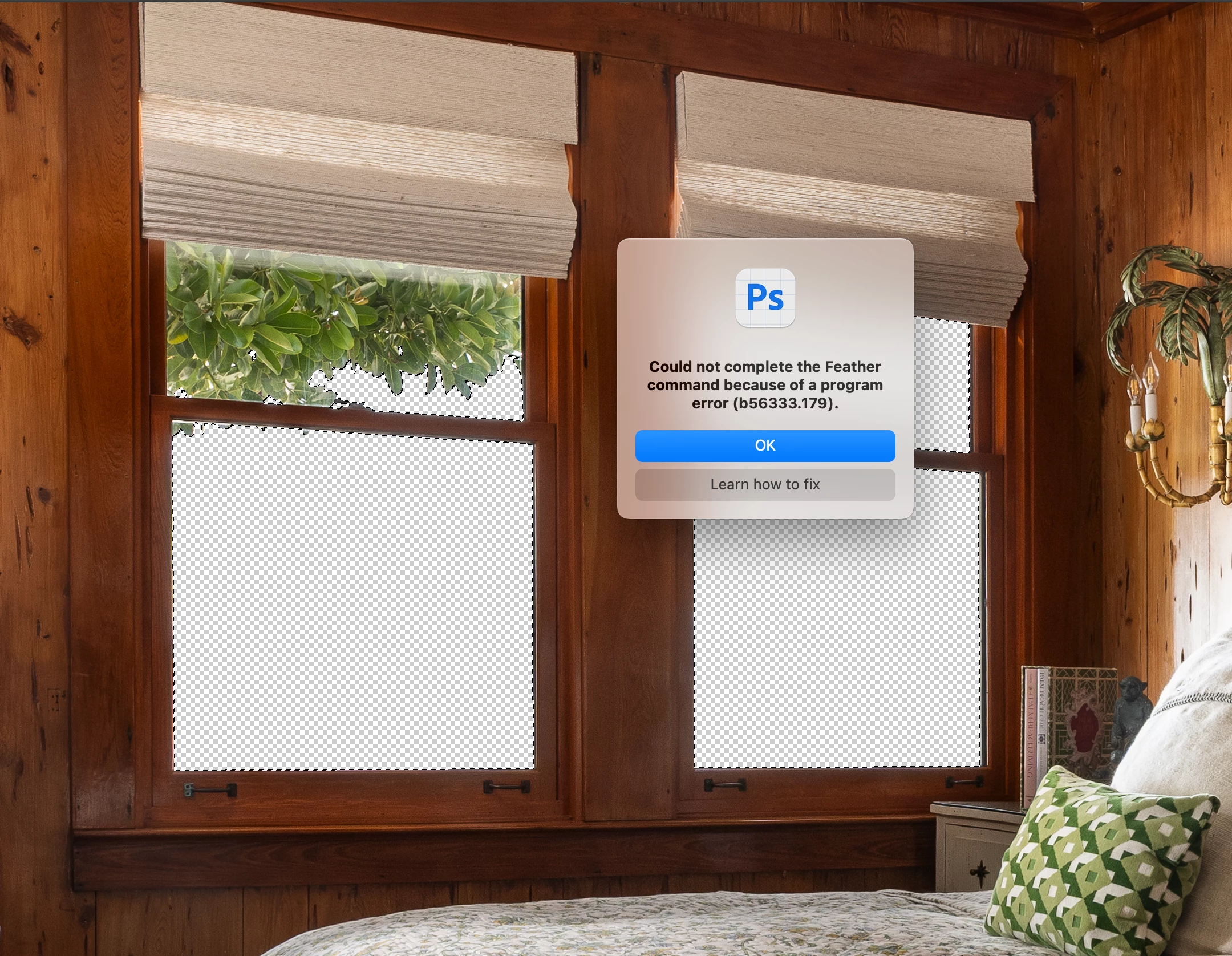 been having an issue with modifying selections.  any type.  expand, contract feather.  they all give me the asame error.