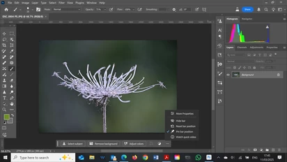 PS beta 26.5.0 20250306.m.3000, the position of the contextual bar cannot be fixed, even after check-marking "pin bar position". After performing another step in processing the check-mark next to it disappears and the bar changes its location, even outside the PS working area. Win 10.