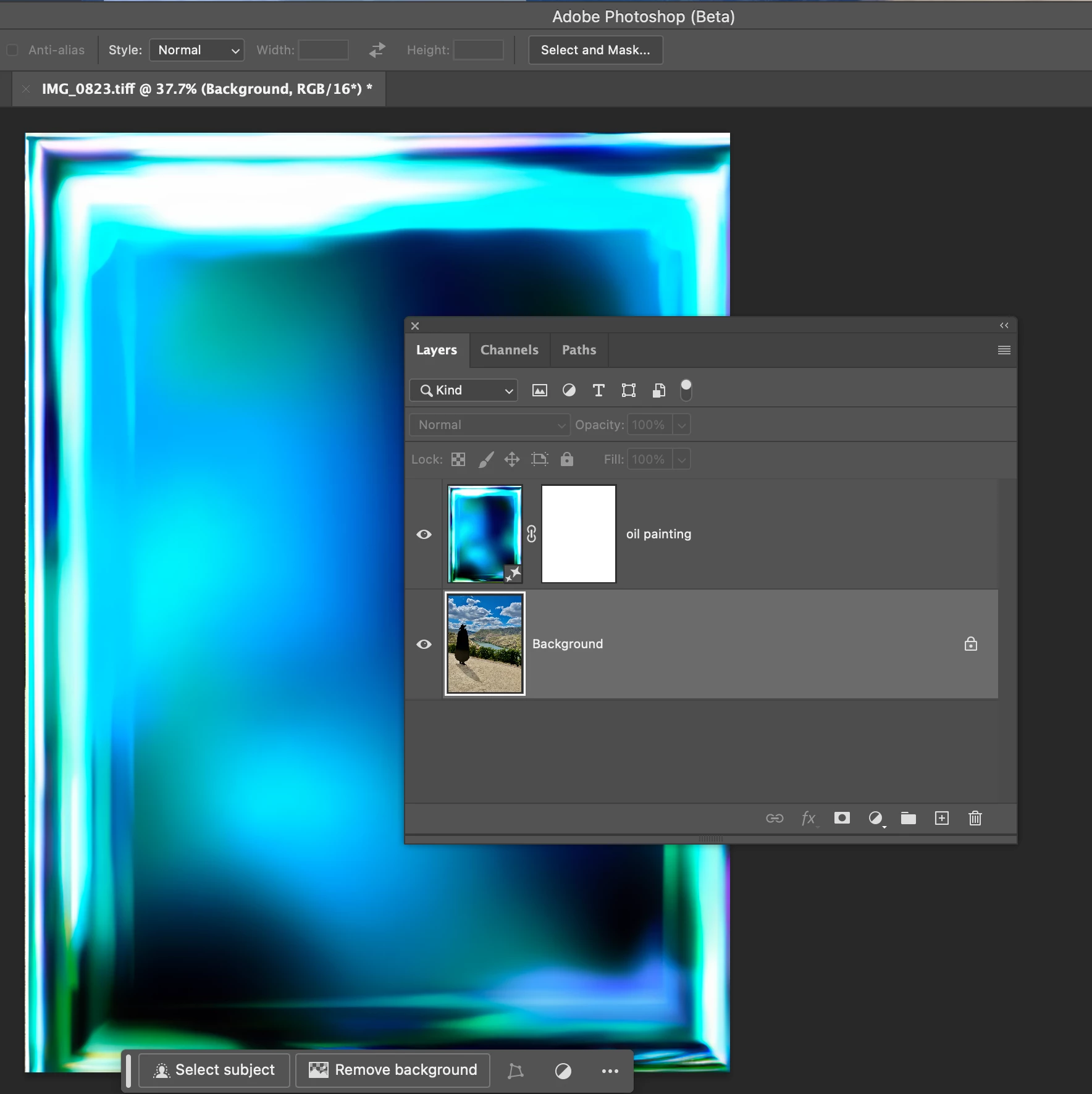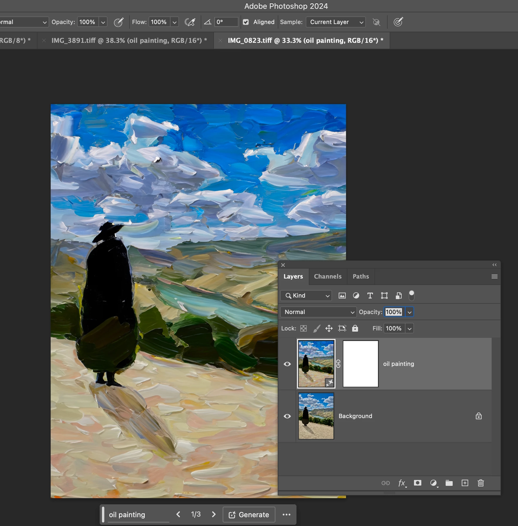 Generative Fill is used for oil painting with reduced opacity. It works okay with Photoshop 25.9.1 but not at all with Photoshop Beta 25.10.0.
