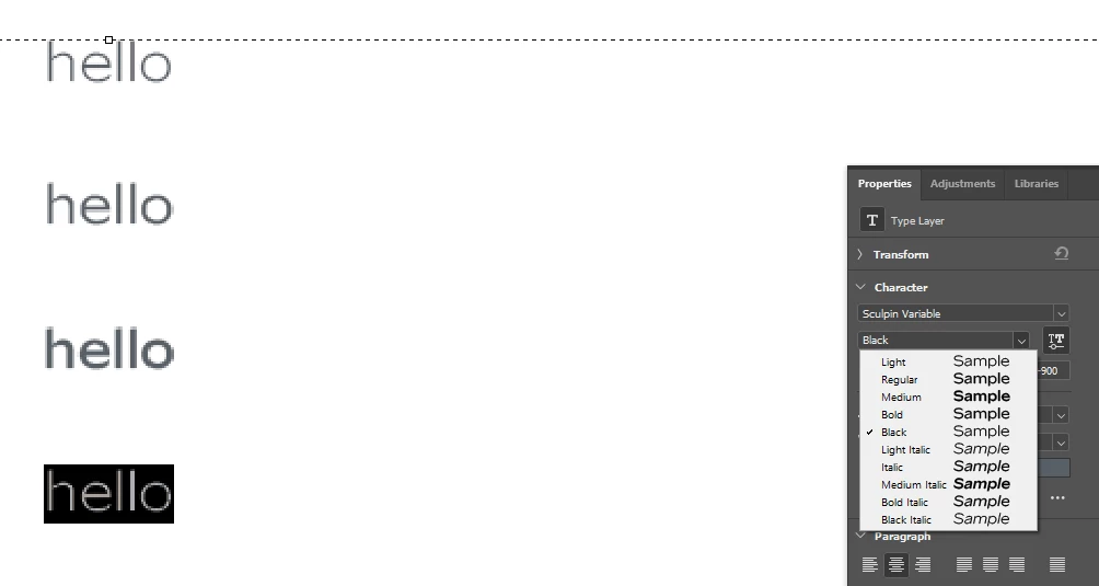 On my computer with Windows 11 (untested on MacOS and Windows 10) I have this problem with variable fonts in Photoshop Beta (The fonts are downloaded from Google Fonts).