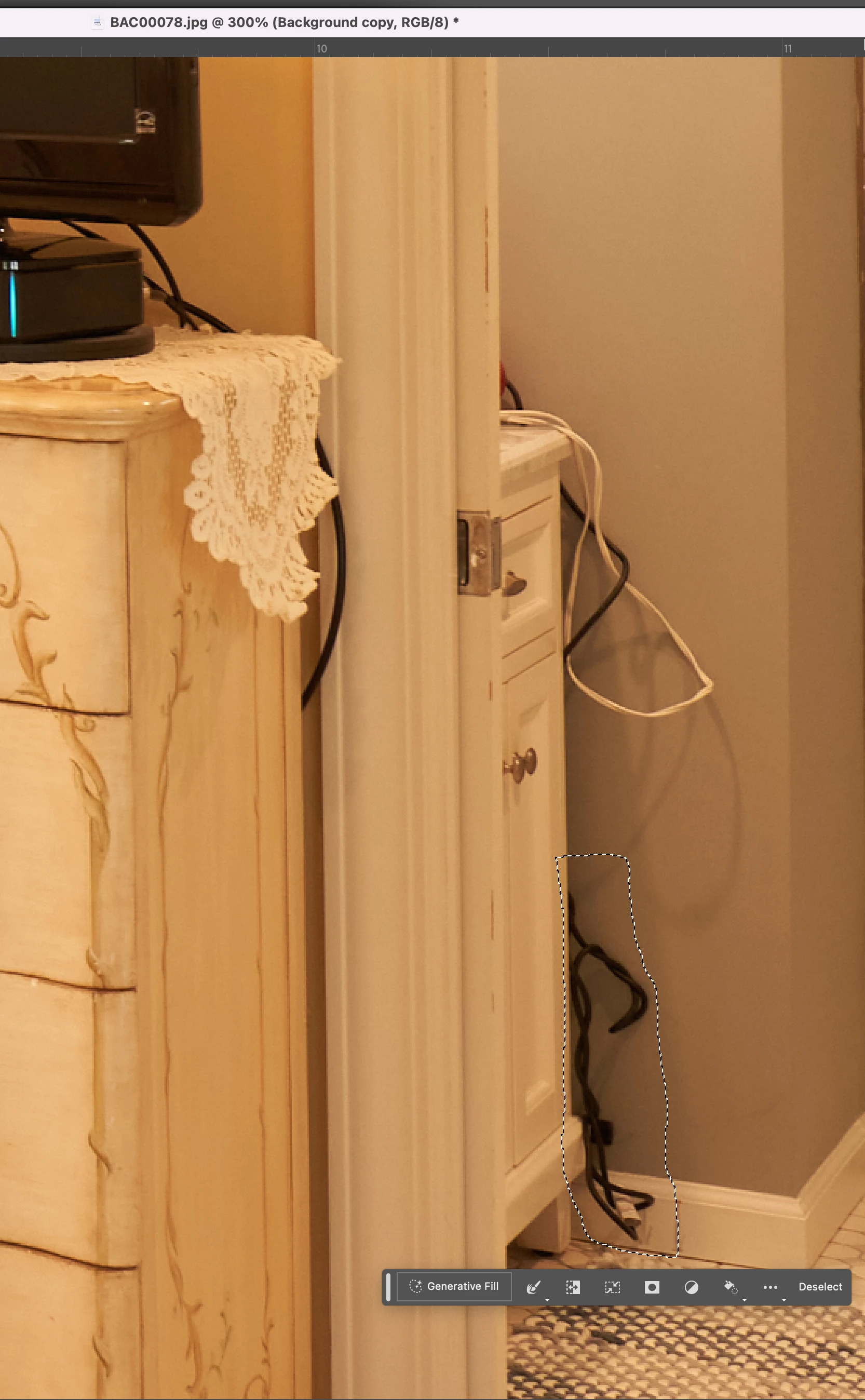 I keep getting a message that I am violating the use of generative fill.  I am now working on removing cords from a bathroom.  I have also had the same thing many times near a nose on a face. Or items against a person.  How can we get around this?