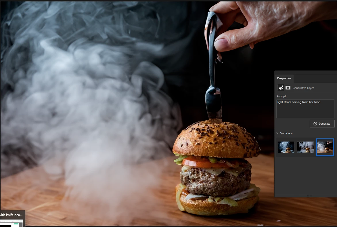 @uging30866256ig47 I tried this prompt, “light steam coming from hot food,” as a quick example, and it looks like you might get something workable with a better selection area and some fine-tuning!